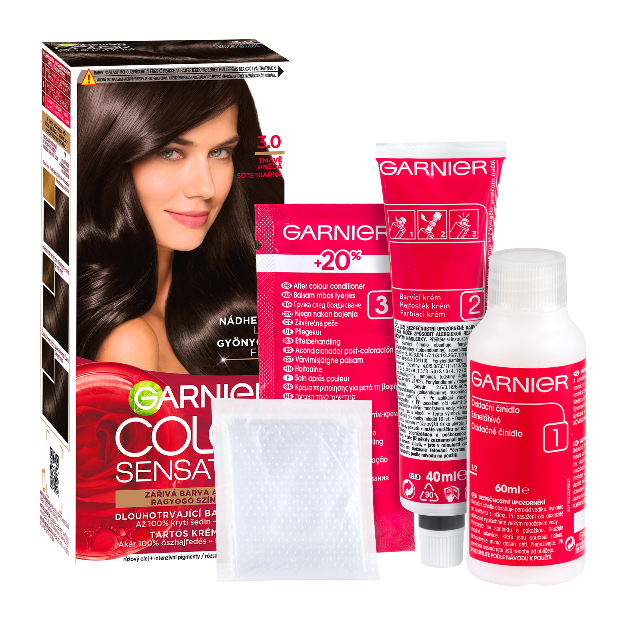 Nová řada Garnier Color Sensation přináší PERMANENTNÍ barvy na vlasy s dosud nejvyšším obsahem účinných pigmentů od Garnier. Přiložená vyživující péče je navíc obohacená o výtažek z divoké růže. Barvy mají dlouhotrvající účinek, vysokou intenzitu a dokonale kryjí (až 100% kryjí šediny). Vybraný barevný odstín zůstává dlouho živý a zářivý. Díky obsažené perleti odráží světlo a vlasy jsou krásně lesklé a hedvábné na dotek.