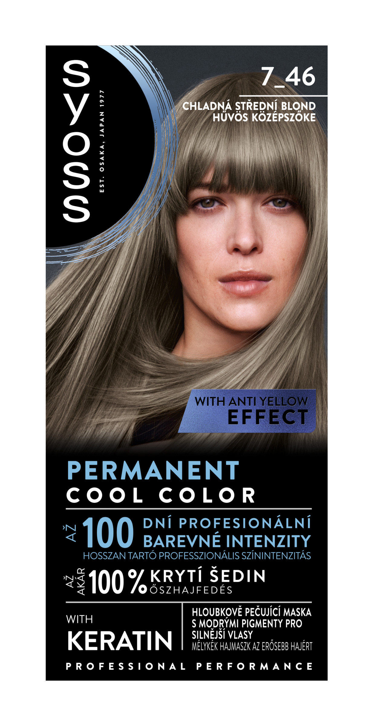 Permanentní barva na vlasy Syoss Cool Color 6-46 Chladná tmavá blond - Permanentní barva na vlasy s efektem proti žlutým tónům a až 100% krytím šedin