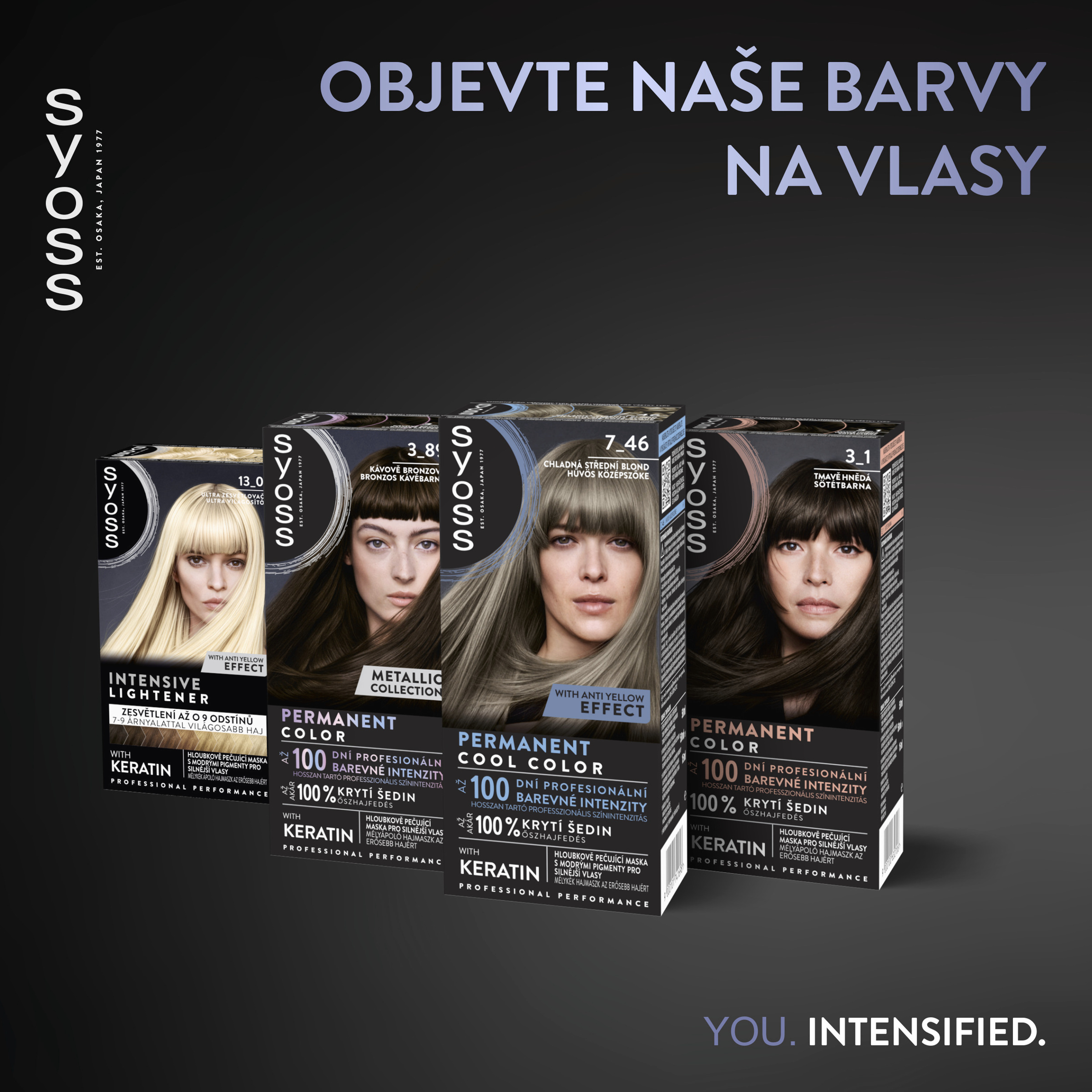 Objevte nejširší nabídku permanentních barev na vlasy Syoss s trendy odstíny přímo od kadeřníků. Pro dlouhotrvající zářivou barvu, profesionální krytí šedin a silnější vlasy zevnitř i zvenčí.