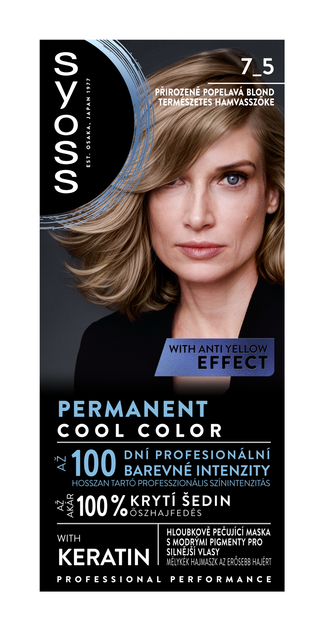 Permanentní barva na vlasy s efektem proti žlutým tónům a až 100% krytím šedin. Permanentní barvy na vlasy Syoss, s více než 45letou historií, jsou navrženy pro profesionální výkon. Díky této chladné barvě na vlasy budou vaše vlasy dlouhodobě působit plné života díky neutralizační síle barevných pigmentů. Barvicí krém s chladnými barevnými odlesky a keratinem proniká hluboko do vlasového vlákna, neutralizuje nežádoucí žluté tóny a odhaluje chladné odstíny s až 100 dny profesionální barevné intenzity a až 100% krytím šedin. Součástí balení je také hloubkově pečující modrá maska obohacená o keratin, která hloubkově posiluje vlasy zevnitř, zatímco její modré pigmenty odstraňují teplé tóny pro ledové odlesky. Tato přirozeně popelavá blond barva na vlasy se doporučuje pro světle blond až tmavě blond vlasy.