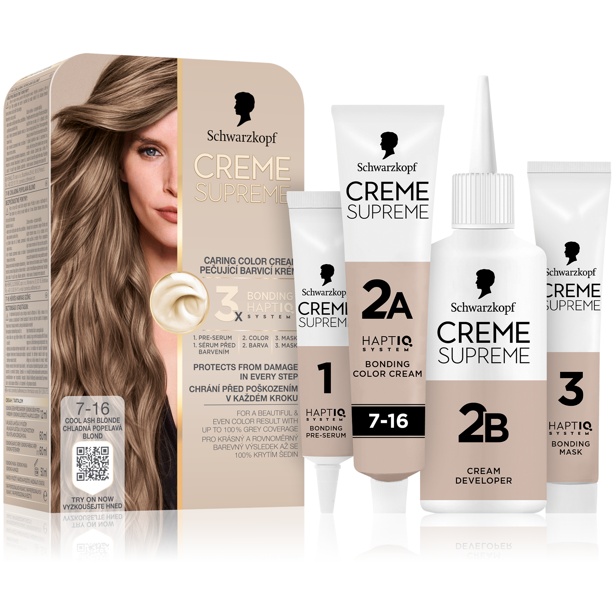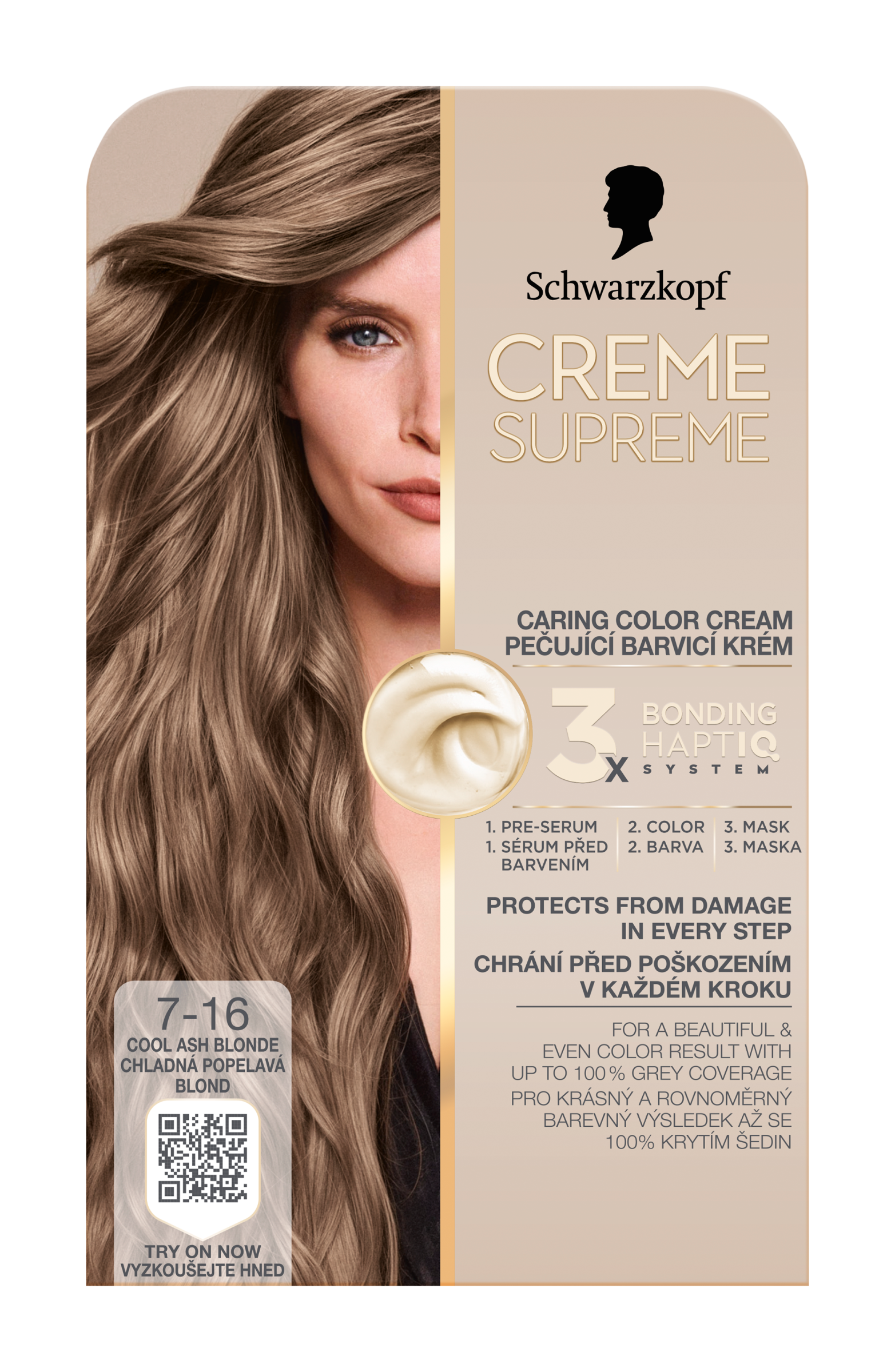 Vysněná barva na vlasy s péčí, kterou si zasloužíte Tato pečující barva na vlasy od Schwarzkopf s technologií 3x Bonding HaptIQ System poskytuje intenzivní ochranu a péči, díky čemuž zajišťuje krásný a jednotný barevný výsledek s až 100% krytím šedin. Jak to celé funguje? Bonding sérum před barvením: Toto intenzivně pečující sérum vlasy dokonale připraví na celý proces barvení. Díky inovativní technologii vytváří mikrovazby a posiluje vlasy pro jejich rovnoměrné obarvení. Bonding barvicí krém: Poskytuje vlasům ochranu, aby nedošlo k jejich poškození během barvení. Bonding maska: Obaluje vlasy ochrannou vrstvou a vytváří nové mikrovazby pro hloubkovou péči. Certifikace PETA* *Globální politika netestování na zvířatech.