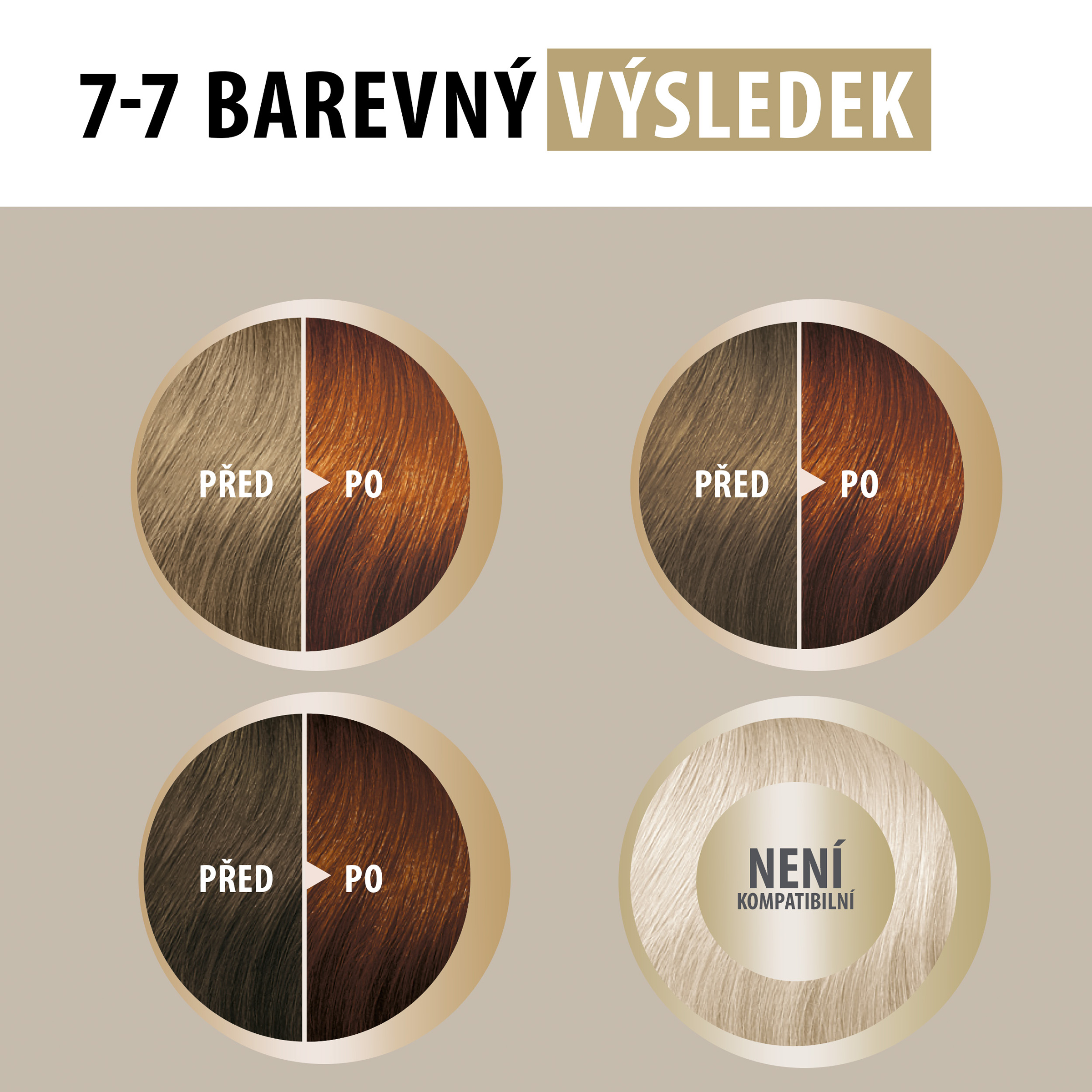 KROK 3 – OPLÁCHNUTÍ A NÁSLEDNÁ PÉČE Po uplynutí doby působení si znovu nasaďte rukavice. Na závěr aplikace přidejte do vlasů teplou vodu a vytvořte pěnu. Poté důkladně oplachujte, dokud voda nebude čirá. Do ručníkem vysušených vlasů (mimo kořínky) naneste Bonding masku (3). Nechte působit 5 minut a poté důkladně opláchněte. Vaše vlasy budou snadno rozčesatelné, hebké a lesklé. Masku si ponechte pro další použití, vystačí až na 4 aplikace pro snadno rozčesatelné, jemné vlasy. Barvy na vlasy mohou způsobit těžké alergické reakce. Přečtěte si instrukce a řiďte se jimi. Tento výrobek není určen k používání pro osoby mladší 16 let. Dočasné tetování černou hennou může zvýšit riziko alergie. Nebarvěte si vlasy, pokud: — máte vyrážku na obličeji nebo citlivou, podrážděnou a poškozenou pokožku hlavy, — jste již někdy zaznamenali jakoukoliv reakci po barvení vlasů, — jste v minulosti zaznamenali reakci na dočasné tetování černou hennou. Obsahuje peroxid vodíku, fenylendiaminy (toluenediaminy), resorcinol a amoniak. Nepoužívejte k barvení řas nebo obočí. Po aplikaci vlasy důkladně opláchněte. Složení: viz krabička. Proveďte varovný test na alergii 48 hodin před každým použitím výrobku (viz příbalový leták), a to i v případě, že jste barvy na vlasy používali již dříve. Proto si produkt nezapomeňte zakoupit s předstihem 48 hodin. V případě jakékoliv reakce nebo pochybností se před použitím jakékoliv barvy na vlasy poraďte s lékařem. Řiďte se pokyny a bezpečnostními instrukcemi v přiloženém letáku. Zamezte kontaktu s očima. Při zasažení je ihned vypláchněte. Používejte vhodné ochranné rukavice. Uchovávejte mimo dosah dětí.
