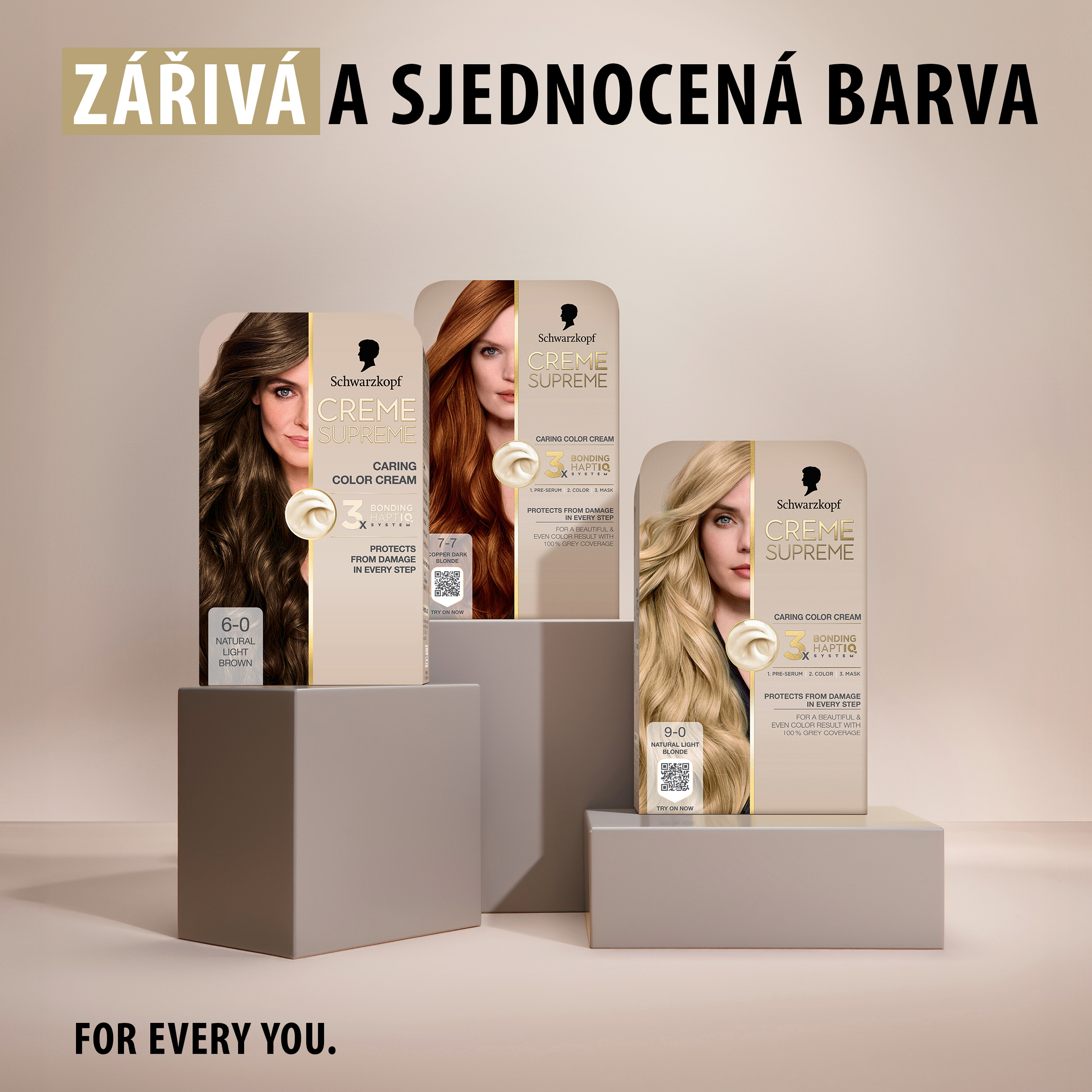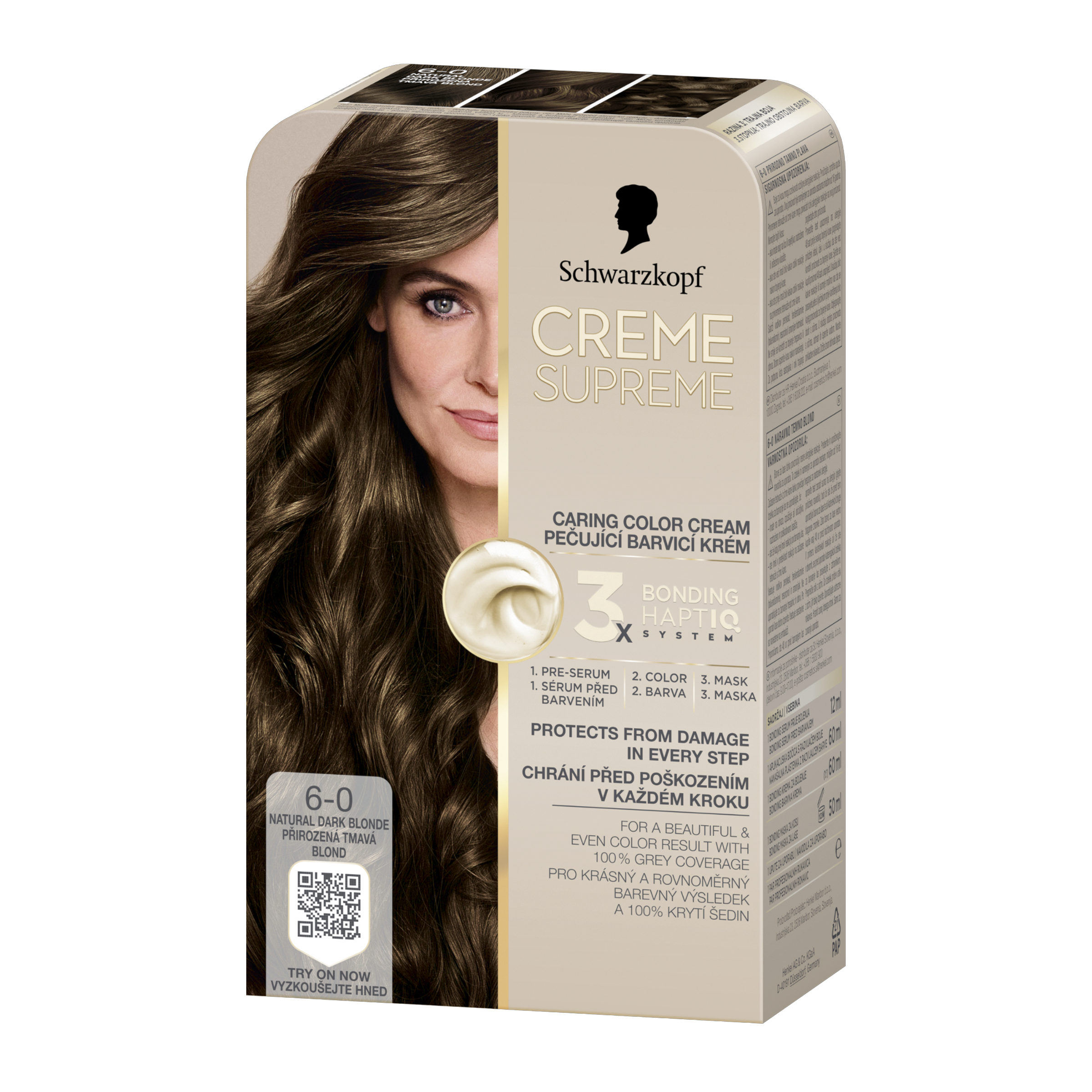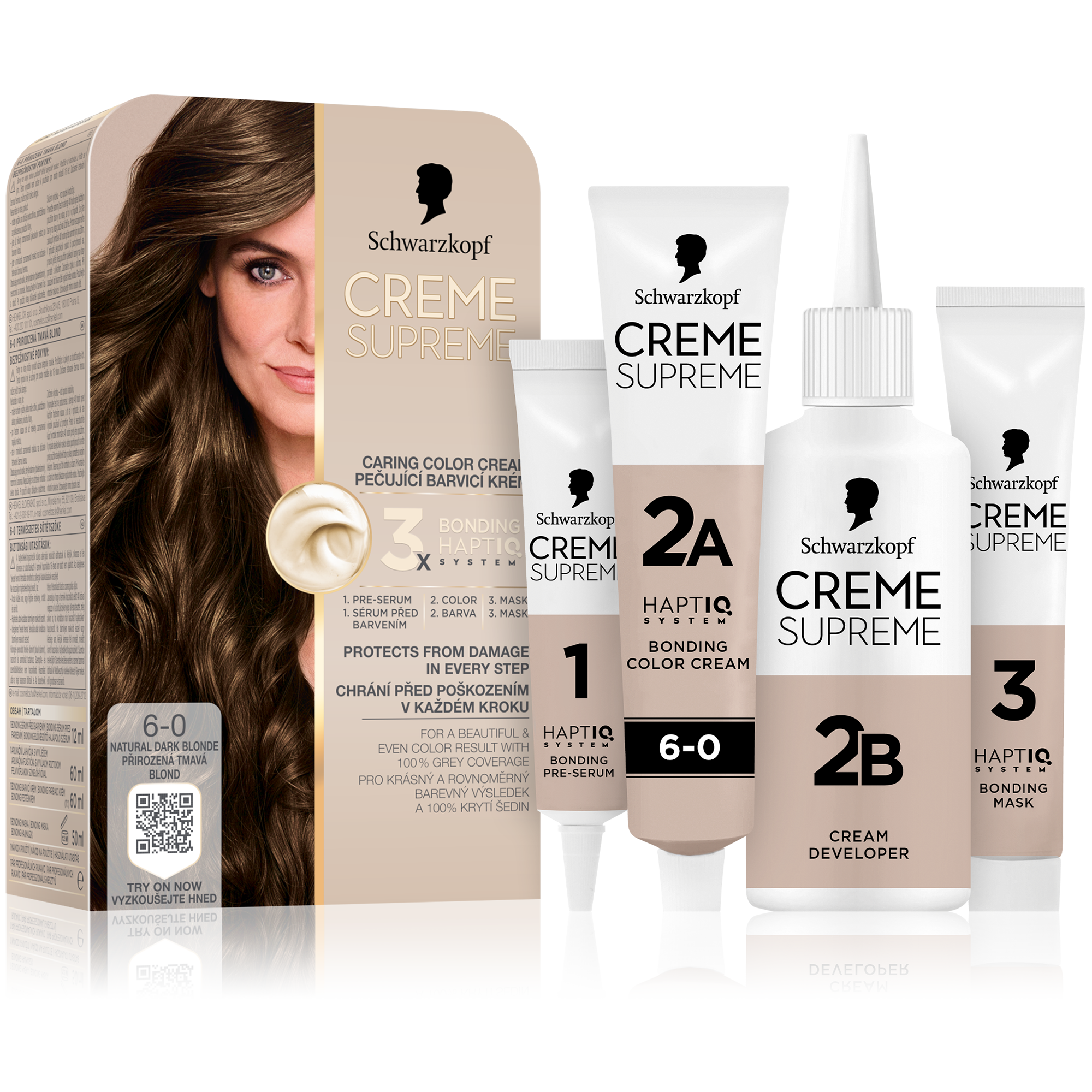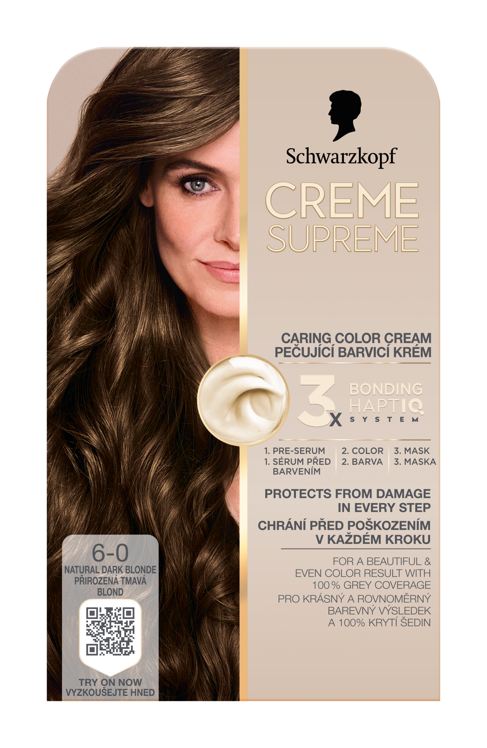 Vysněná barva na vlasy s péčí, kterou si zasloužíte Tato pečující barva na vlasy od Schwarzkopf s technologií 3x Bonding HaptIQ System poskytuje intenzivní ochranu a péči, díky čemuž zajišťuje krásný a jednotný barevný výsledek se 100% krytím šedin. Jak to celé funguje? Bonding sérum před barvením: Toto intenzivně pečující sérum vlasy dokonale připraví na celý proces barvení. Díky inovativní technologii vytváří mikrovazby a posiluje vlasy pro jejich rovnoměrné obarvení. Bonding barvicí krém: Poskytuje vlasům ochranu, aby nedošlo k jejich poškození během barvení. Bonding maska: Obaluje vlasy ochrannou vrstvou a vytváří nové mikrovazby pro hloubkovou péči. Certifikace PETA* *Globální politika netestování na zvířatech.