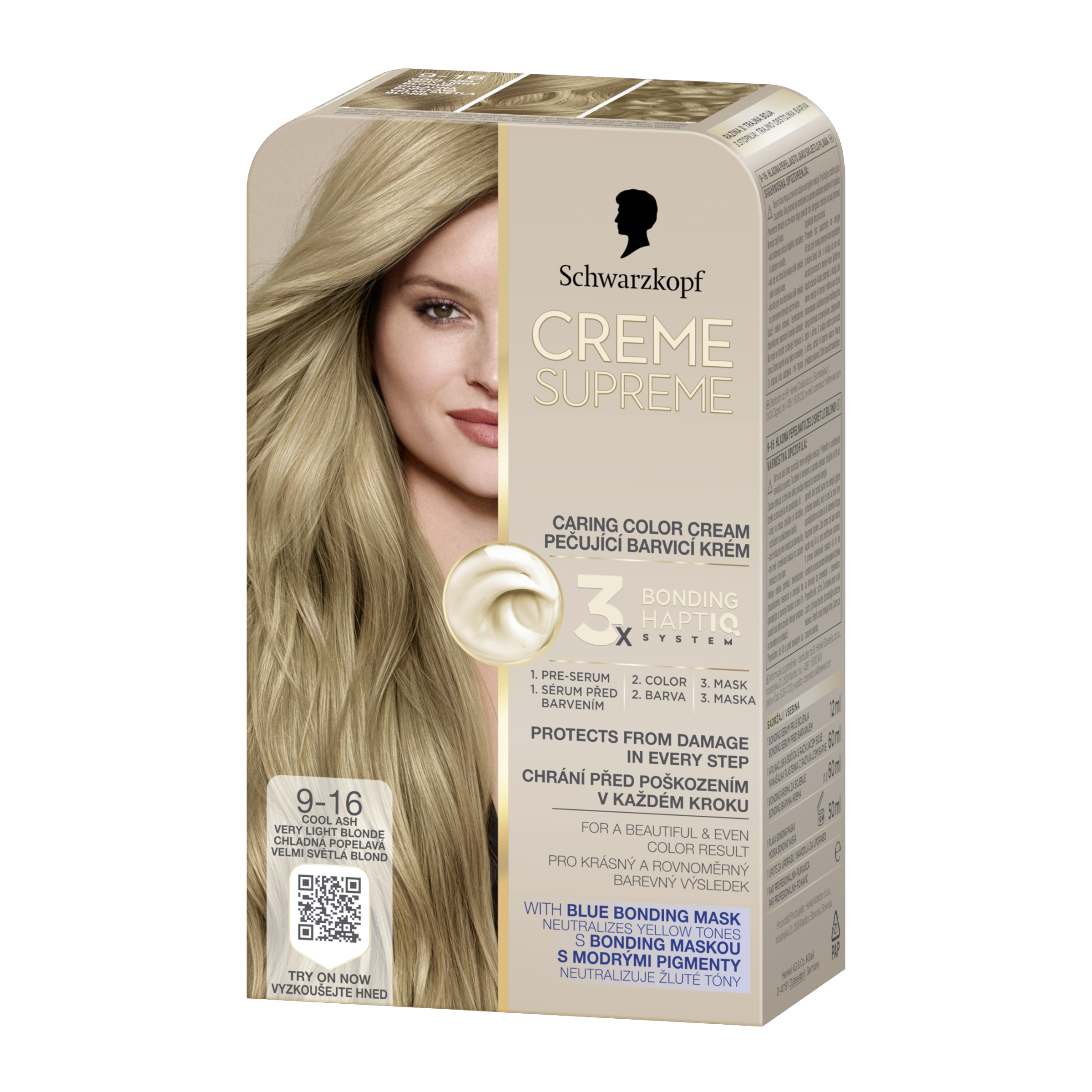 Vysněná barva na vlasy s péčí, kterou si zasloužíte. Tato pečující barva na vlasy od Schwarzkopf s technologií 3x Bonding HaptIQ System poskytuje intenzivní ochranu a péči, díky čemuž zajišťuje krásný a jednotný barevný výsledek. Jak to celé funguje? Bonding sérum před barvením: Toto intenzivně pečující sérum vlasy dokonale připraví na celý proces barvení. Díky inovativní technologii vytváří mikrovazby a posiluje vlasy pro jejich rovnoměrné obarvení. Bonding barvicí krém: Poskytuje vlasům ochranu, aby nedošlo k jejich poškození během barvení. Bonding maska: Obaluje vlasy ochrannou vrstvou a vytváří nové mikrovazby pro hloubkovou péči, zatímco neutralizuje nežádoucí žluté tóny. Certifikace PETA*. *Globální politika netestování na zvířatech.