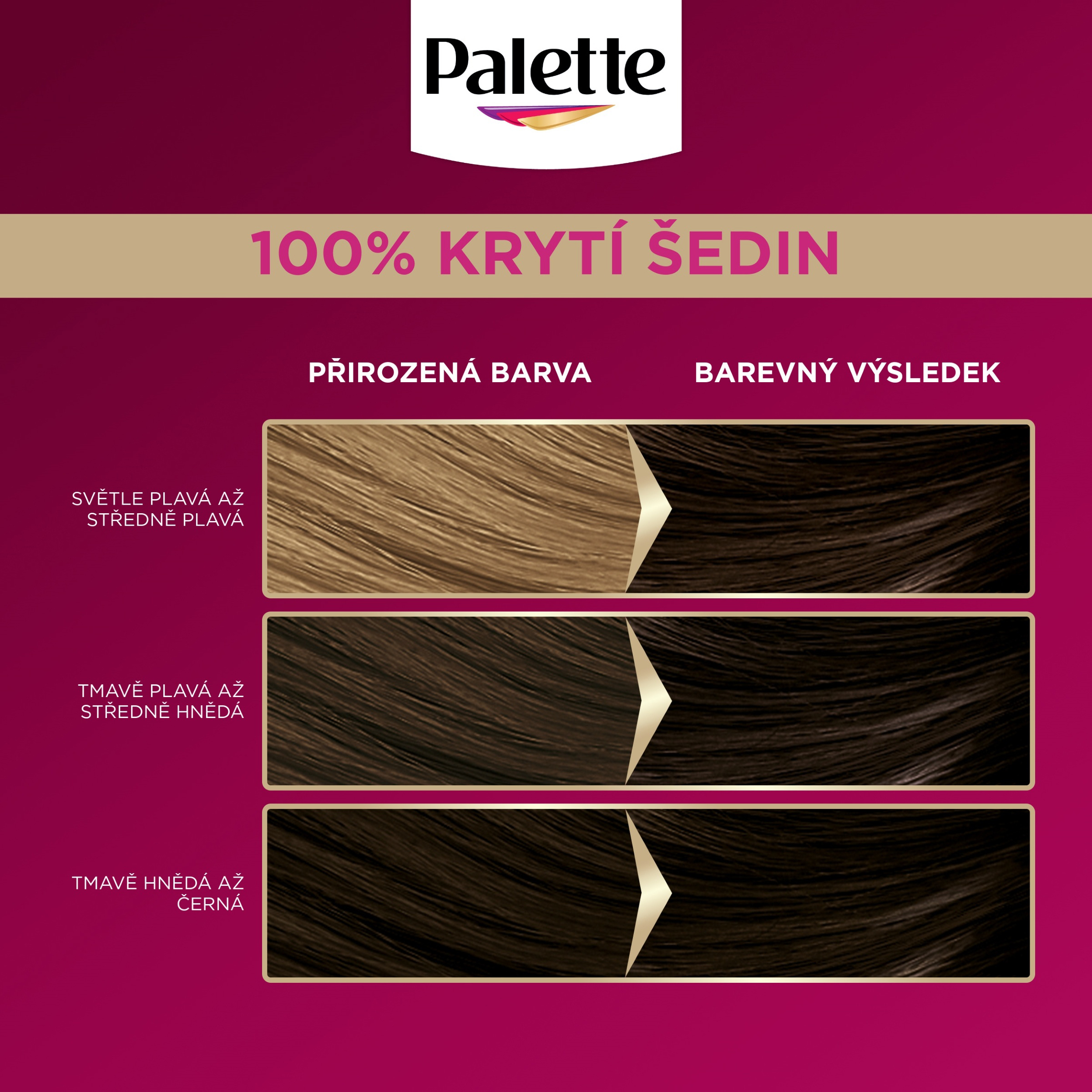 Palette je expertem na barvení vlasů, kterému důvěřují miliony lidí. V průběhu let jsme vyvinuli jedinečné a účinné receptury, které hrdě plní vaše přání v oblasti barvení a stylingu vlasů. Ať už chcete změnit barvu vlasů natrvalo, spolehlivě zakrýt šediny nebo jen vyzkoušet nový vzhled, Palette vám nabízí kompletní řadu barev na vlasy, které vám pomohou splnit vaše osobní přání.