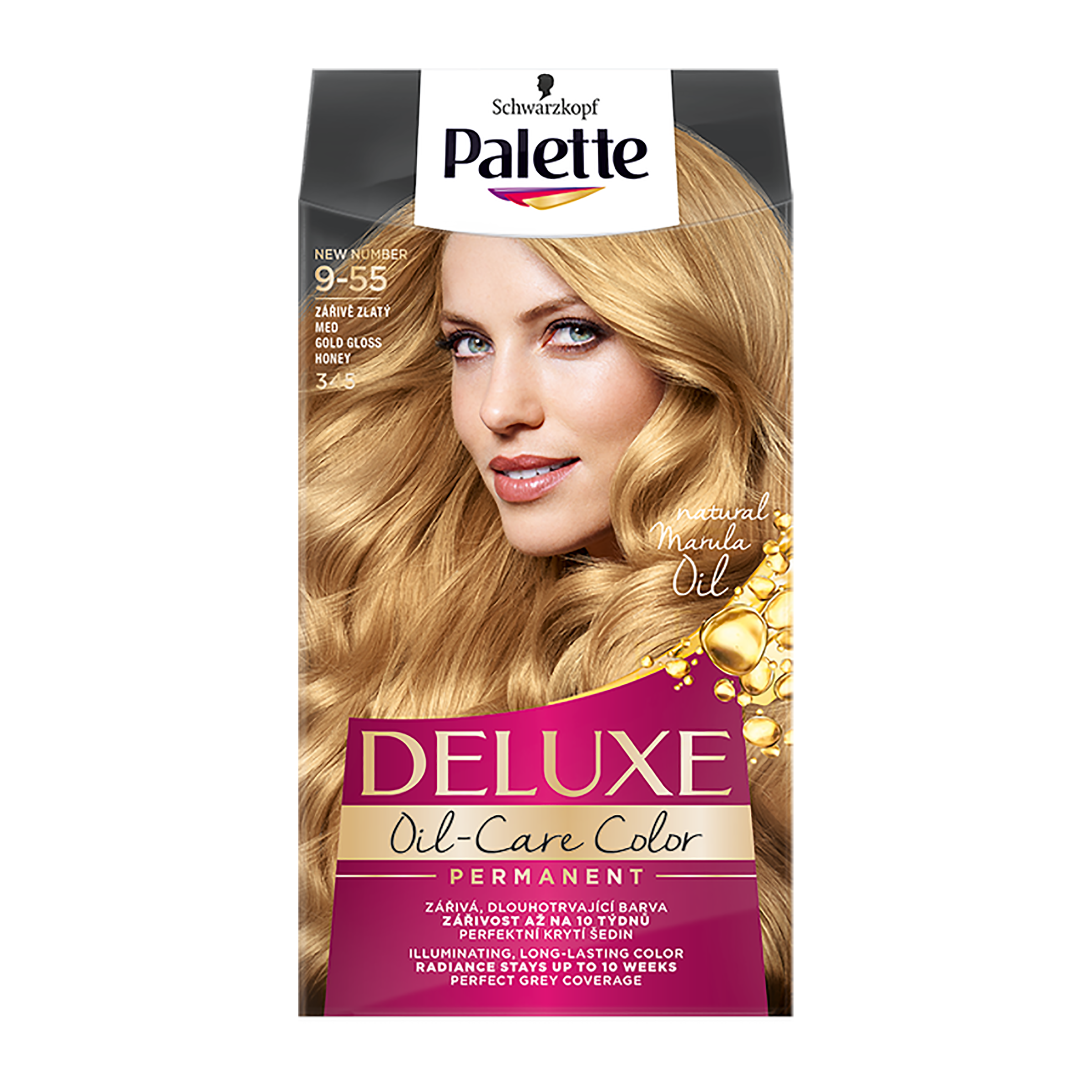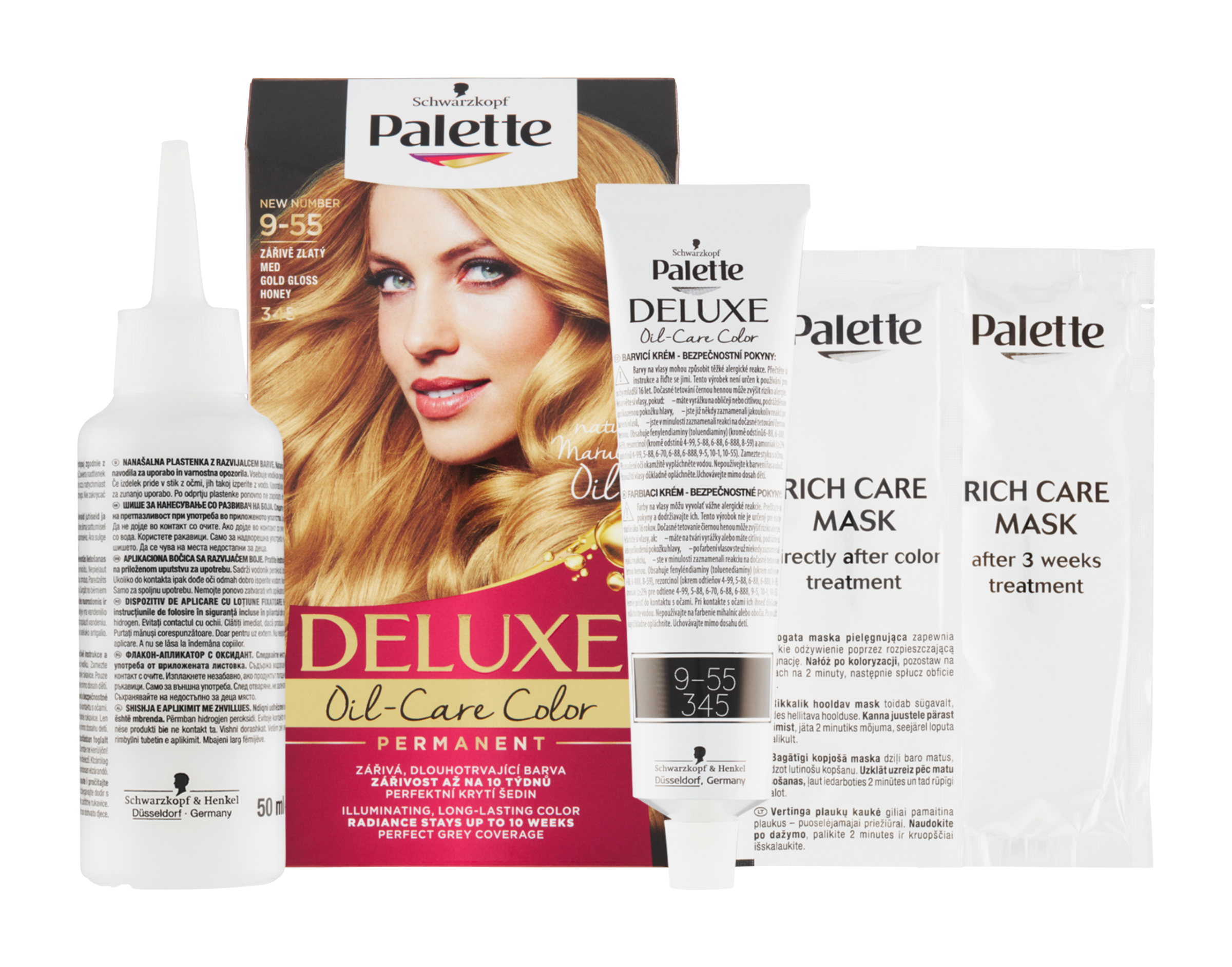 Permanentní olejová pečující barva na vlasy Palette Deluxe nabízí luxusní sytý a dlouhotrvající barevný výsledek a dokonalé krytí šedin. Díky bohatému barvicímu krému s vysoce koncentrovanými barevnými pigmenty poskytuje zářivou, dlouhotrvající barvu až po dobu 10 týdnů. O vlasy navíc pečuje díky pečující masce s přírodním marulovým olejem, která vyhlazuje povrch vlasových vláken, dodává vlasům senzační lesk a zanechává je hebké na dotek. Tento odstín je vhodný pro světle plavou až tmavě plavou barvu vlasů, vhodný až po středně šedivé vlasy.
