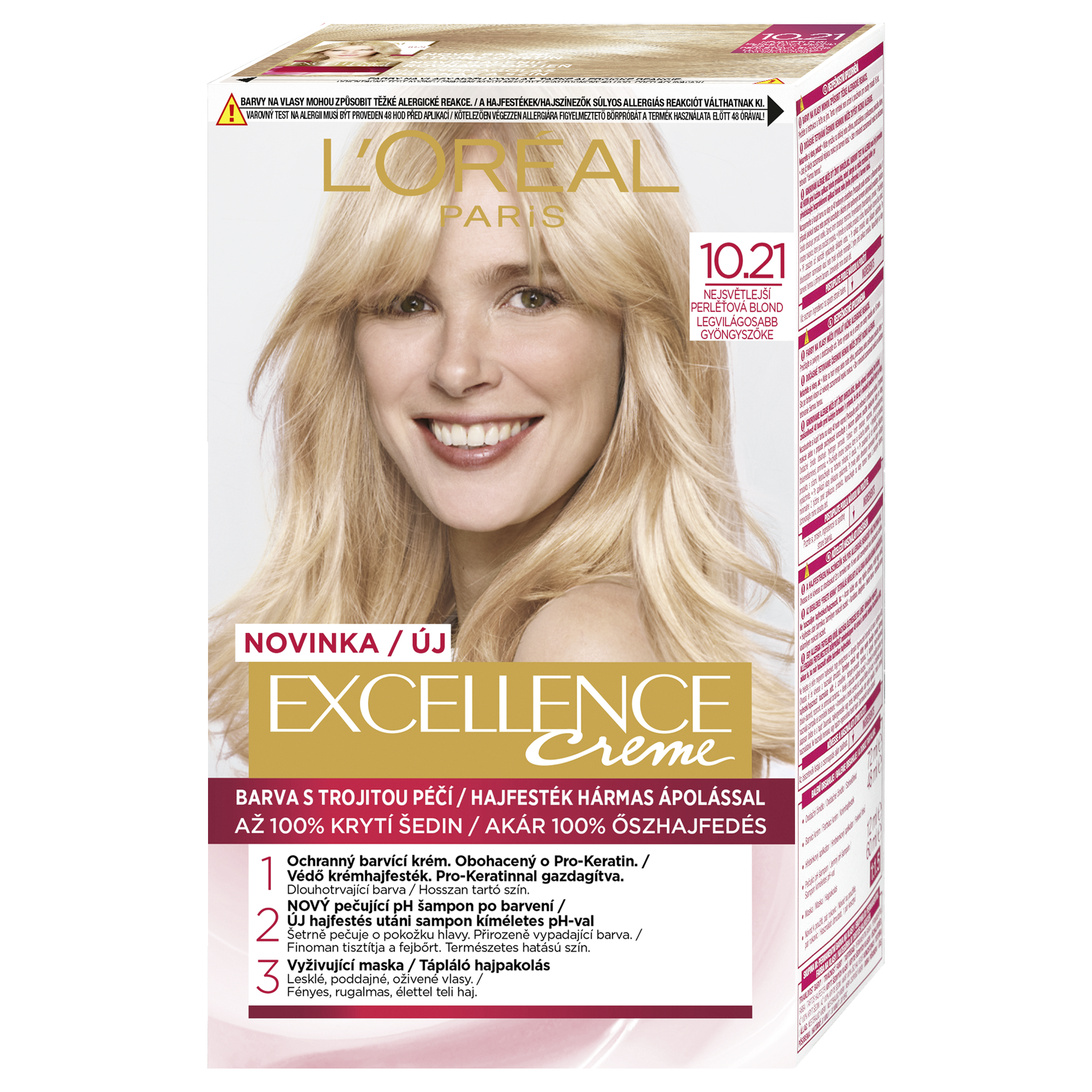 Barva na vlasy Excellence Creme 10.21 nejsvětlejší perleťová blond