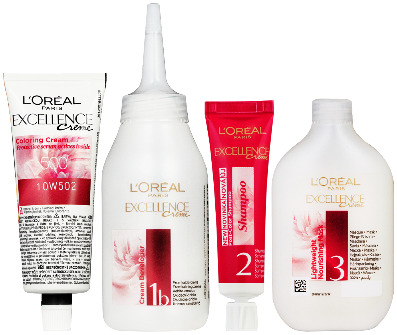 Permanentní barva obohacená o ochranné složky. L'Oréal Paris Excellence přináší rituál barvení s trojí ochranou obohacený o kyselinu hyaluronovou, který se stará o vaši barvu, pokožku hlavy i o vaše vlasy. S novým jemným ošetřujícím pH šamponem po barvení budou vaše vlasy hladké a plné lesku s přirozeně vypadající barvou. Kryje 100 % šedin. Kyselina hyaluronová je silná molekula přitahující hydrataci, přirozeně přítomná v těle, se schopností udržet 1000násobek své hmotnosti ve vodě.