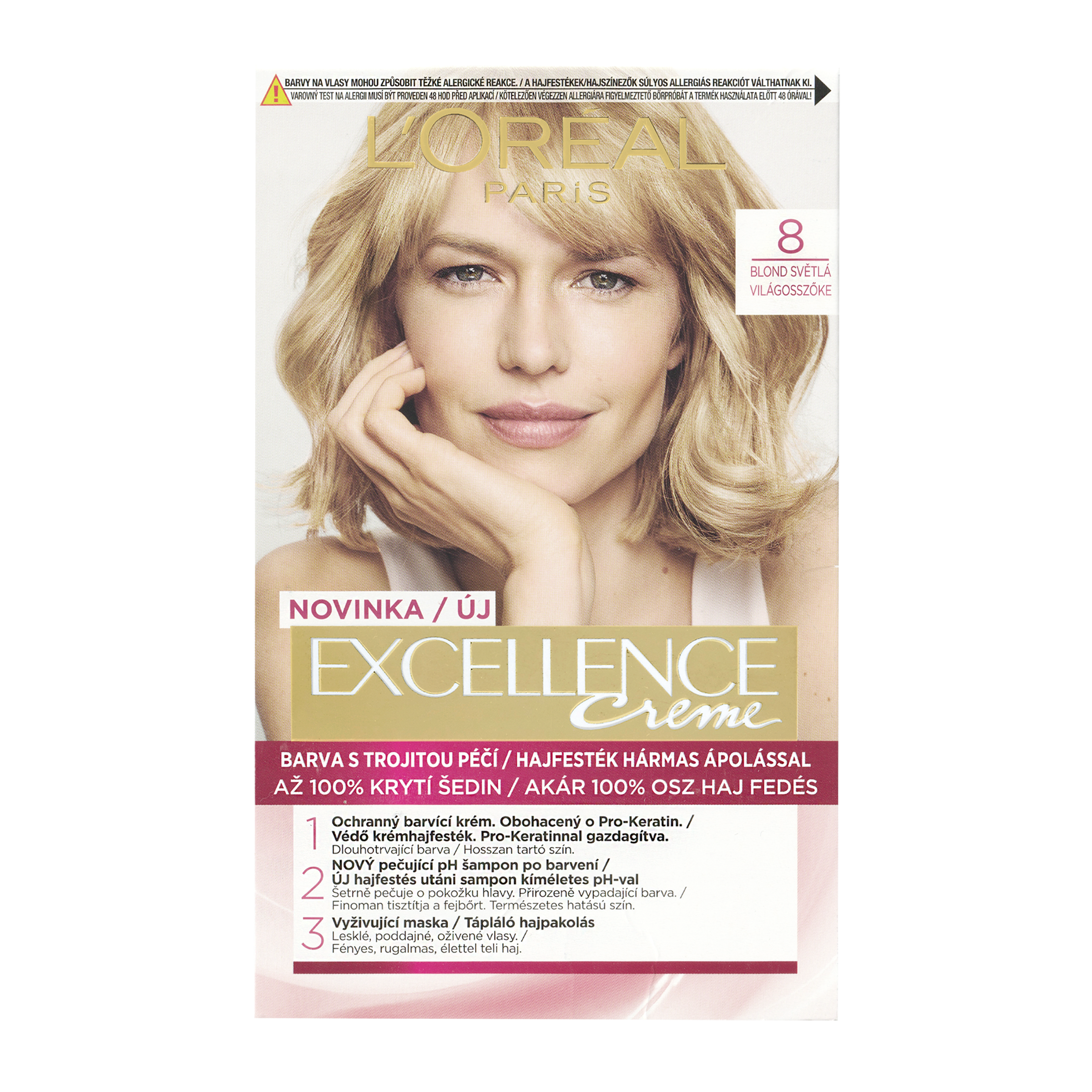 Permanentní barva obohacená o ochranné složky. L'Oréal Paris Excellence přináší rituál barvení s trojí ochranou obohacený o kyselinu hyaluronovou, který se stará o vaši barvu, pokožku hlavy i o vaše vlasy. S novým jemným ošetřujícím pH šamponem po barvení budou vaše vlasy hladké a plné lesku s přirozeně vypadající barvou. Kryje 100 % šedin. Kyselina hyaluronová je silná molekula přitahující hydrataci, přirozeně přítomná v těle, se schopností udržet 1000násobek své hmotnosti ve vodě.