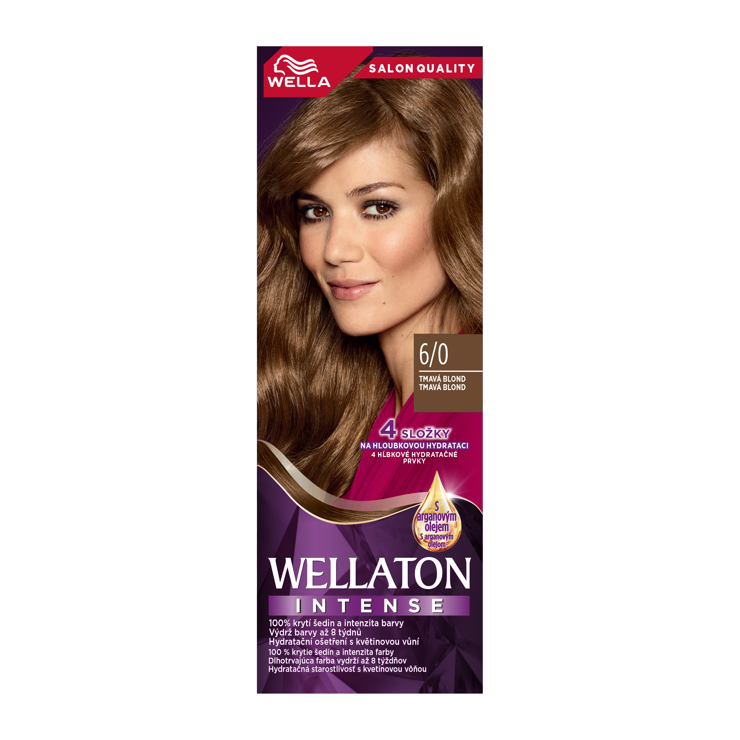 Barva Wellaton Intense poskytuje 100% krytí šedin a dlouhotrvající intenzivní barvu až po dobu 8 týdnů. Je obohacena o miliony pigmentů, které pronikají hluboko do vlasů, přináší intenzivní a dlouhotrvající výsledky. Složení se 4 složkami pro hloubkovou hydrataci a exkluzivní hydratační kúra s arganovým olejem bojují proti vysoušení vlasů.