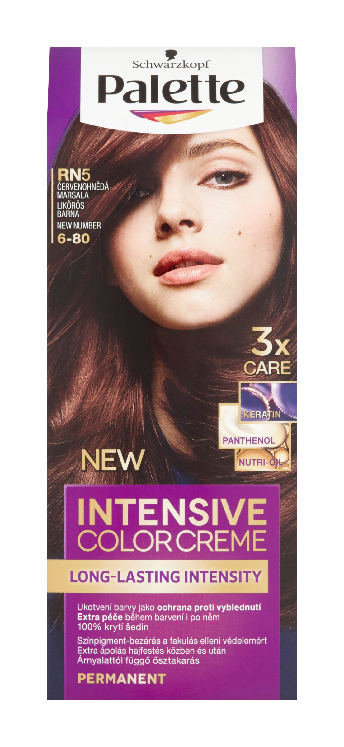 Palette Intensive Color Creme se systémem trojí péče pro dlouhotrvající a intenzivní barevný výsledek. Složení s vysoce intenzivními pigmenty proniká hluboko do vlasů a ukotvuje v nich barvu pro ochranu proti vyblednutí. Výsledkem je tak dlouhotrvající intenzita barvy po několik týdnů a 100% krytí šedin. O vlasy pečuje během barvení i po něm díky systému trojí péče, který obsahuje keratin, panthenol a nutri-olej, a zanechává je hebké na dotek. Tento odstín je vhodný pro světle plavé až středně hnědé vlasy. Vhodný až po úplně šedivé vlasy.
