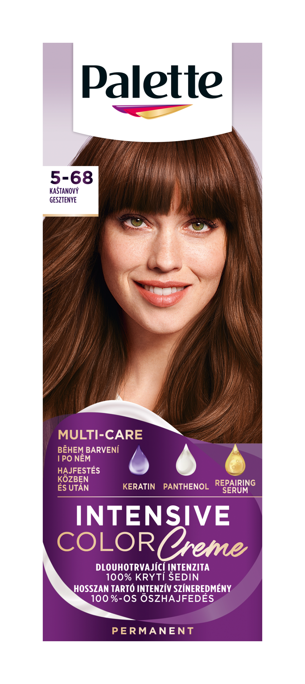 Objevte Palette Intensive Color Creme s MULTI-CARE recepturou pro dlouhotrvající a intenzivní barevný výsledek. Složení s vysoce intenzivními pigmenty proniká hluboko do vlasů a ukotvuje v nich barvu pro ochranu proti vyblednutí. Výsledkem je tak dlouhotrvající intenzita barvy po několik týdnů a 100% krytí šedin. Nová MULTI-CARE receptura díky keratinu, panthenolu a regeneračnímu séru navíc chrání vaše vlasy a poskytuje jim komplexní péči během barvení a po něm. Keratin slouží jako ochranný štít, který vlasy chrání během barvení i po něm. Panthenol vlasy intenzivně vyživuje a viditelně zlepšuje jejich kvalitu. Regenerační sérum je navrženo k obnovení a zjemnění vlasového vlákna. Tento odstín je vhodný pro středně plavé až středně hnědé vlasy. Vhodný i na úplně šedivé vlasy.