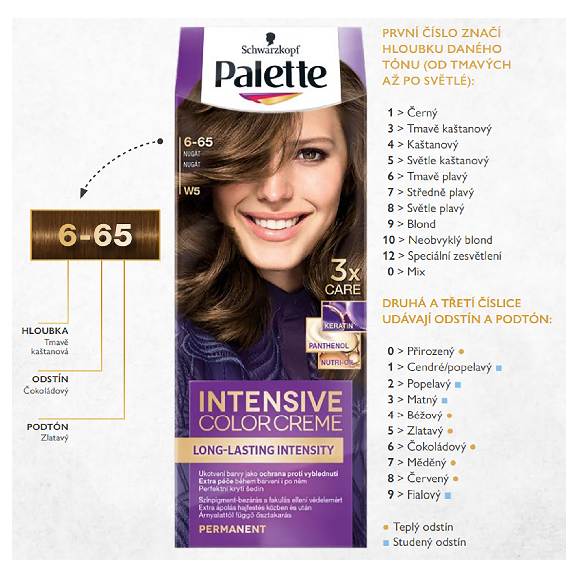 Značka Palette vděčí za svůj úspěch Schwarzkopf odborníkům a nabízí širokou škálu intenzivních, dlouhotrvajících nebo šetrně pečujících přirozených barev inspirovaných nejnovějšími trendy. Značka Palette se pyšní více jak 45letou tradicí ve 45 zemích po celém světě a je tak expertem na barvení vlasů, kterému důvěřují miliony žen. Za dobu své existence získala značka generace spokojených zákaznic, které volí kvalitní, a přitom cenově dostupnou barvu na vlasy.