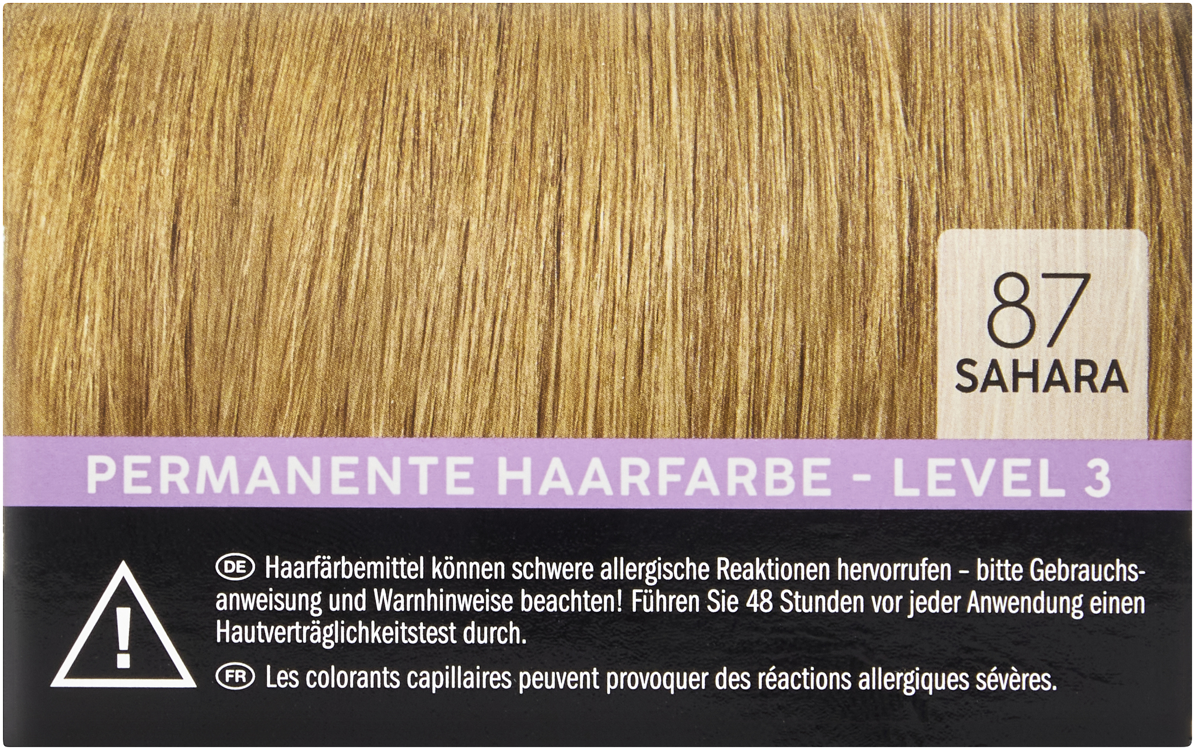 Obsahuje amoniak, fenylediaminy (toluylenediaminy) a peroxid vodíku. Barvy na vlasy mohou způsobit závažné alergické reakce. Přečtěte si prosím následující pokyny a dodržujte je: Dočasné tetování "černou hennou" může zvýšit riziko alergie. Nebarvěte si vlasy, pokud máte vyrážku na obličeji nebo pokud je vaše pokožka hlavy citlivá, podrážděná nebo poraněná; pokud jste někdy po barvení vlasů zaznamenali reakci; pokud u vás dočasné tetování s "černou hennou" někdy vyvolalo reakci. V těchto případech se před použitím barvy na vlasy poraďte s dermatologem. Nepoužívejte k barvení řas a obočí.