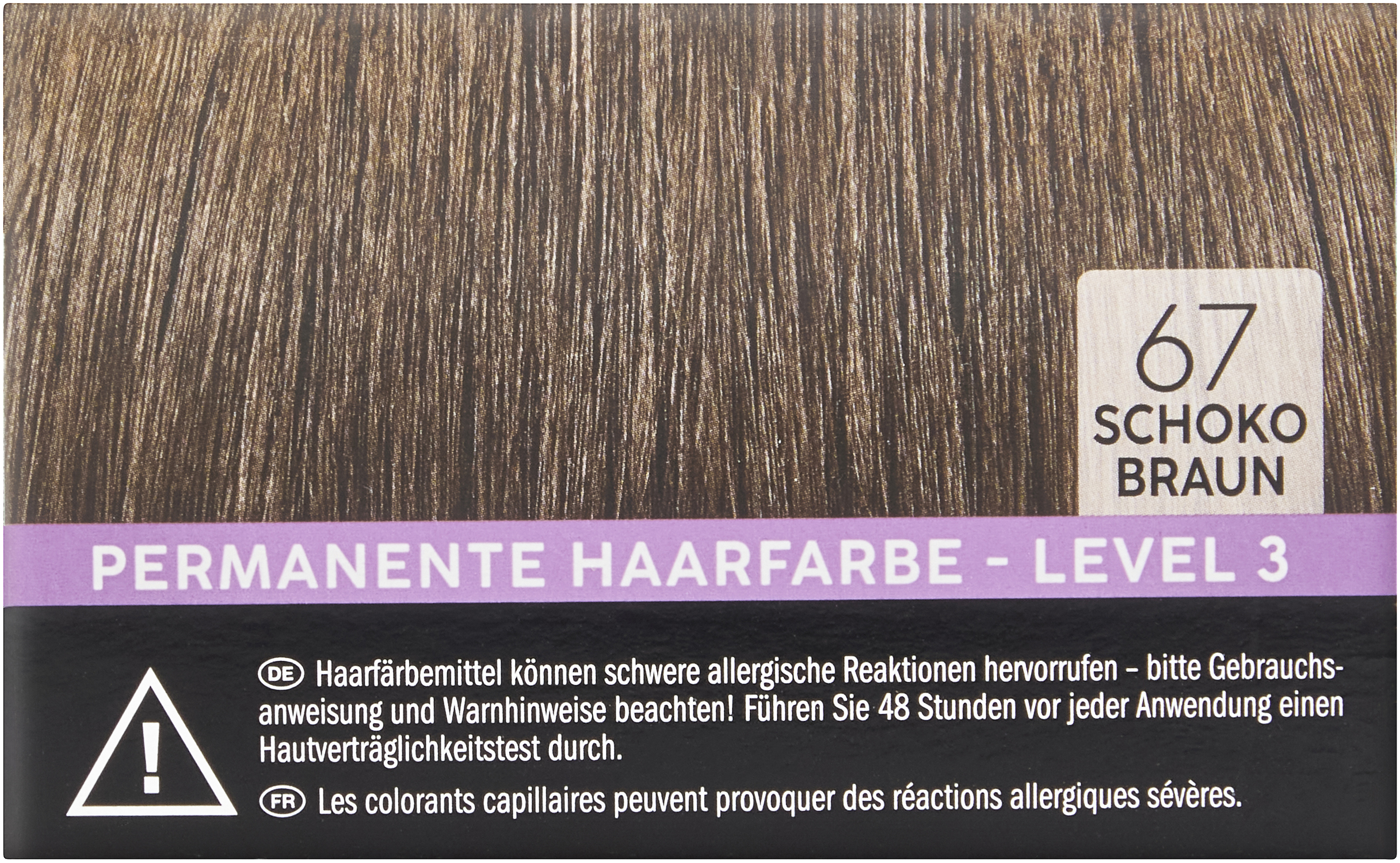 Obsahuje amoniak, fenylediaminy (toluylenediaminy) a peroxid vodíku. Barvy na vlasy mohou způsobit závažné alergické reakce. Přečtěte si prosím následující pokyny a dodržujte je: Dočasné tetování "černou hennou" může zvýšit riziko alergie. Nebarvěte si vlasy, pokud máte vyrážku na obličeji nebo pokud je vaše pokožka hlavy citlivá, podrážděná nebo poraněná; pokud jste někdy po barvení vlasů zaznamenali reakci; pokud u vás dočasné tetování s "černou hennou" někdy vyvolalo reakci. V těchto případech se před použitím barvy na vlasy poraďte s dermatologem. Nepoužívejte k barvení řas a obočí.