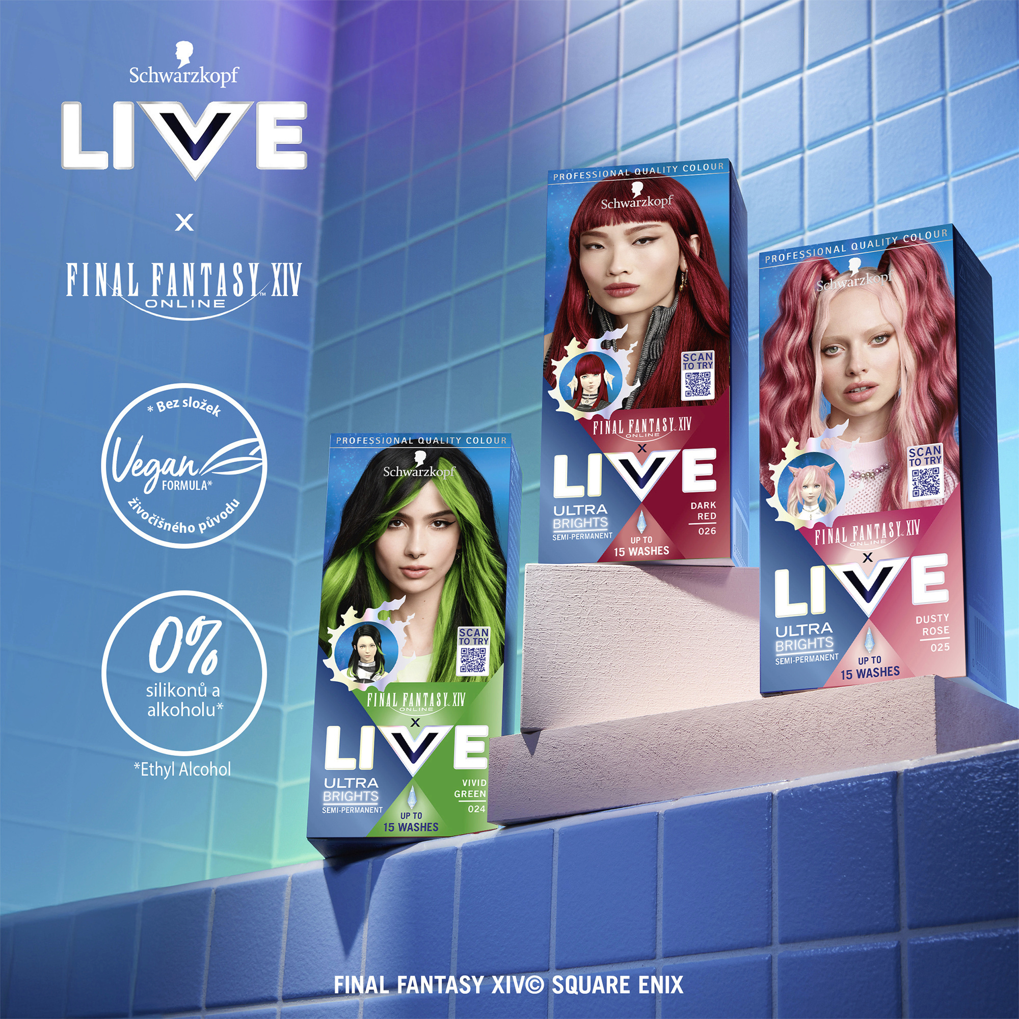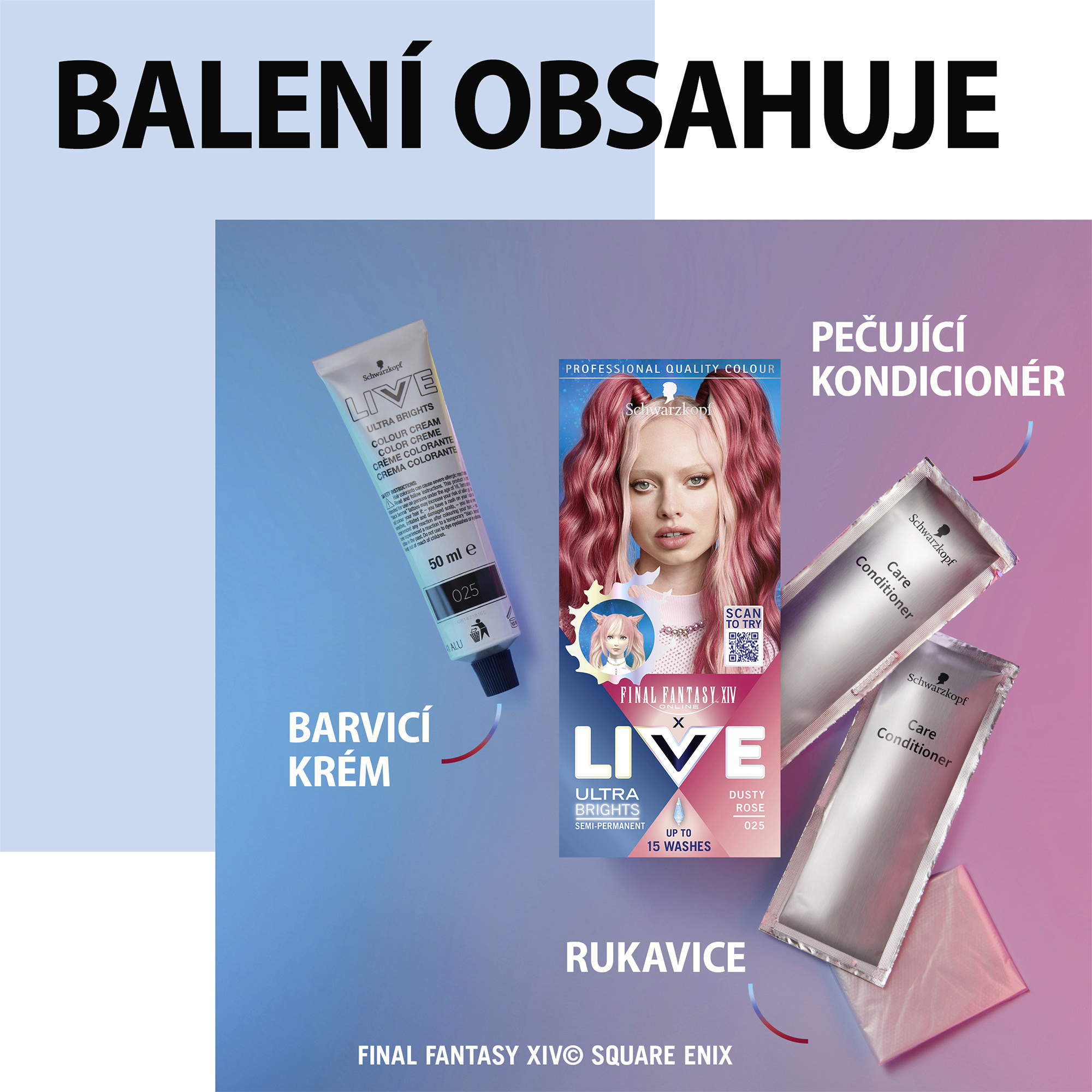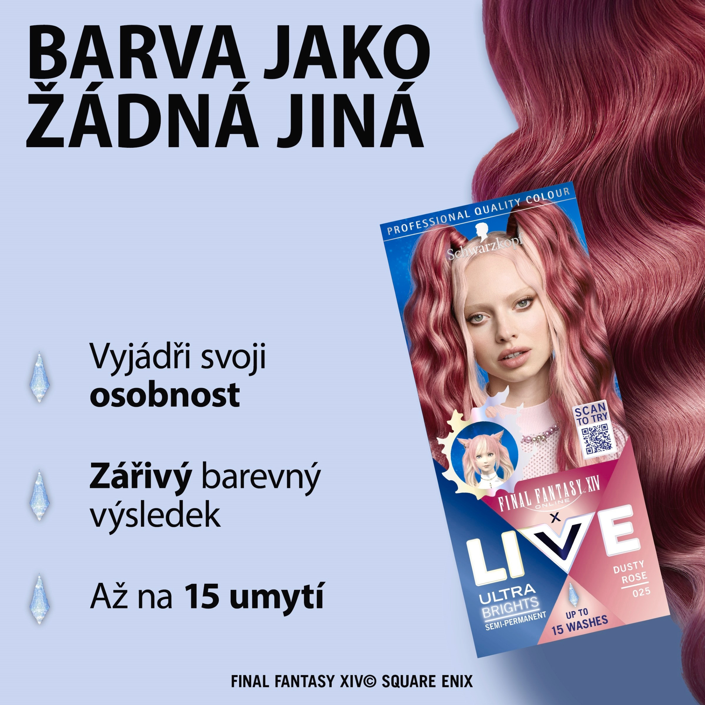 Objevte intenzivní zářivost barvy díky obsahu elektrizujících pigmentů. Nebo zkuste pastelový tón, který získáte smícháním barvicího krému s přiloženým balzámem. Vzhled postavy ze hry 'Final Fantasy XIV Online' byl upraven a může se lišit od skutečného vzhledu ve hře. Vymývá se po 12-15 umytích