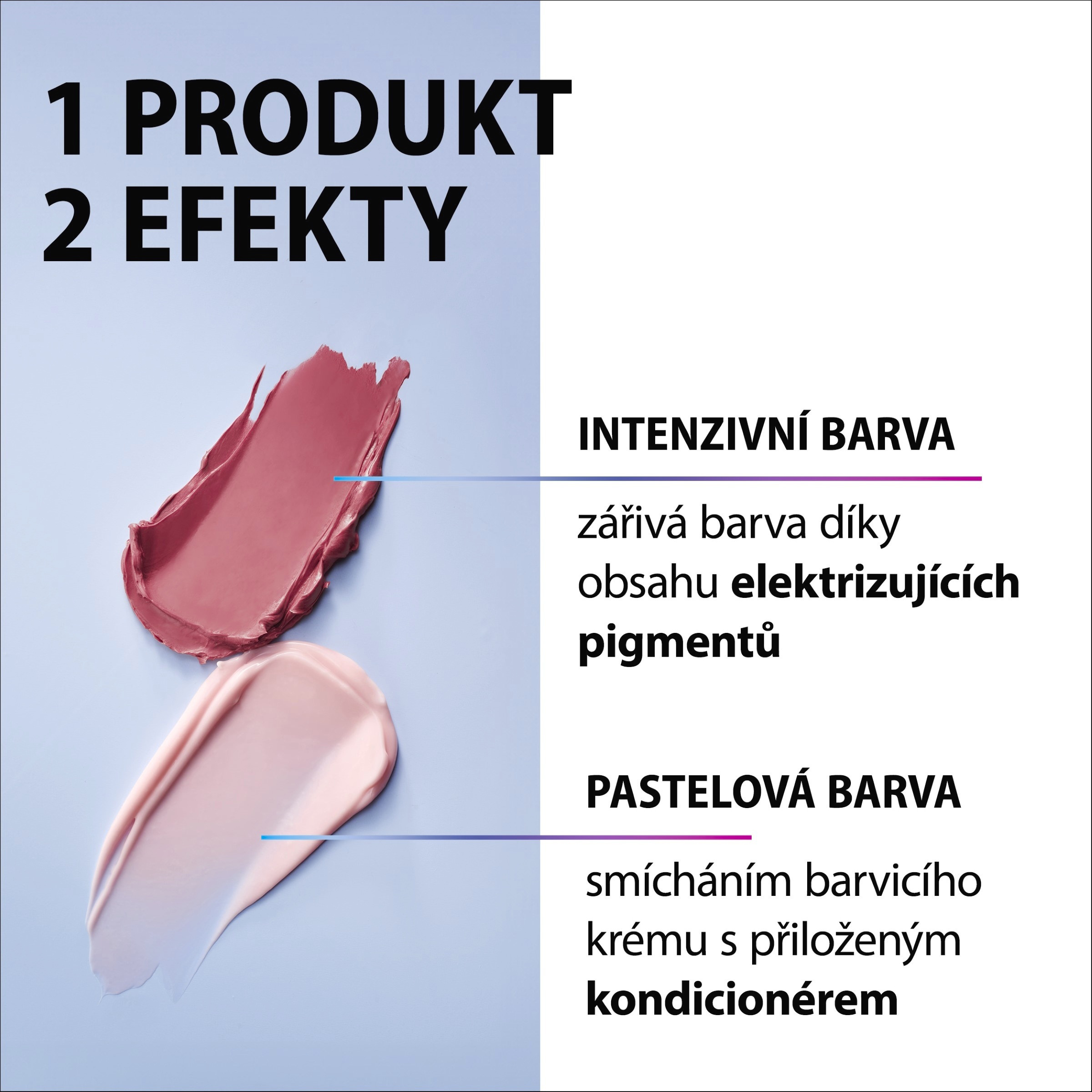 - 1 produkt - 2 efekty: sytá nebo pastelová barva