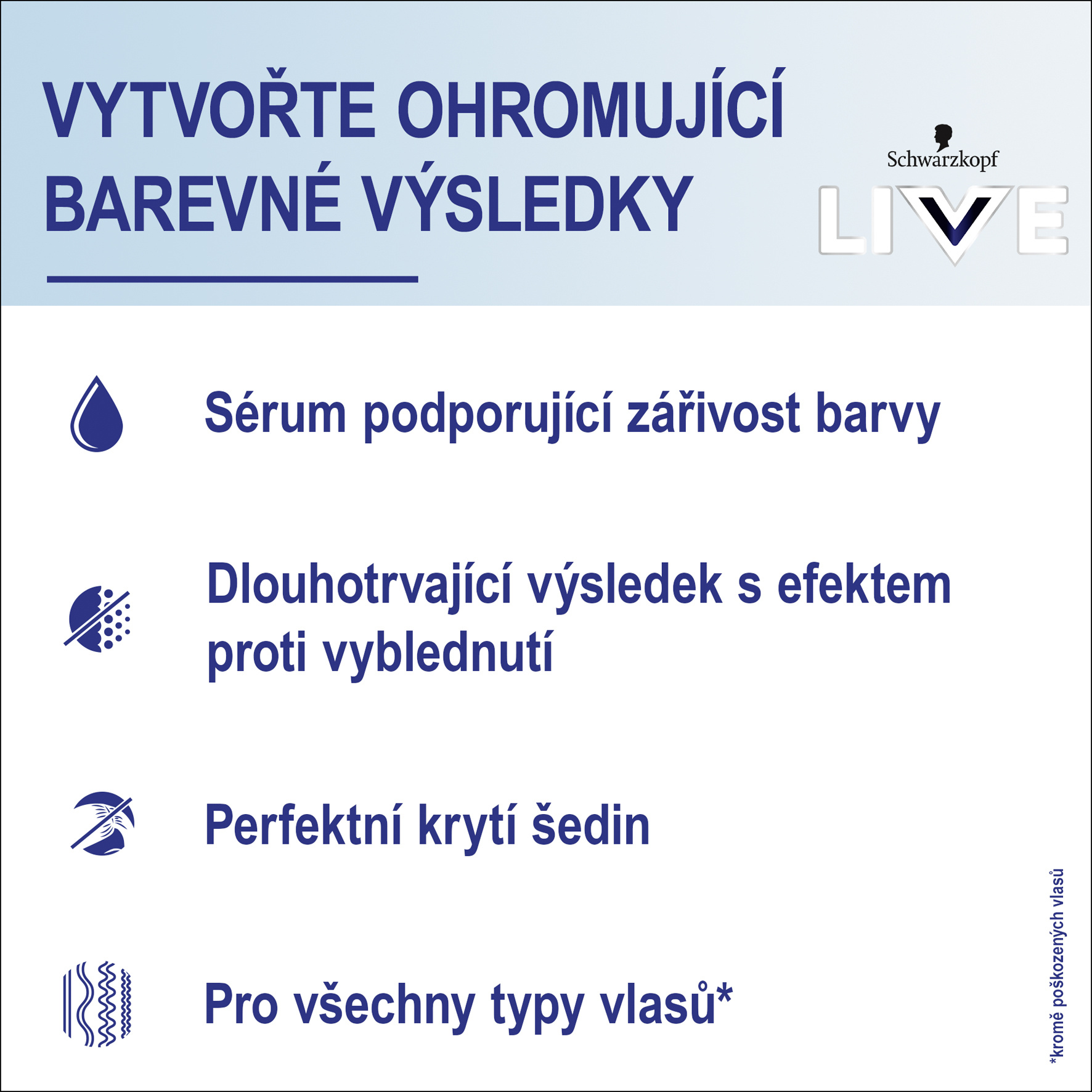 - KRÁSNÝ LESK: Vyzkoušejte ohromující zářivé odstíny s krásným leskem této LIVE modré barvy na vlasy. S perfektním krytím šedin. Vhodné pro všechny typy vlasů