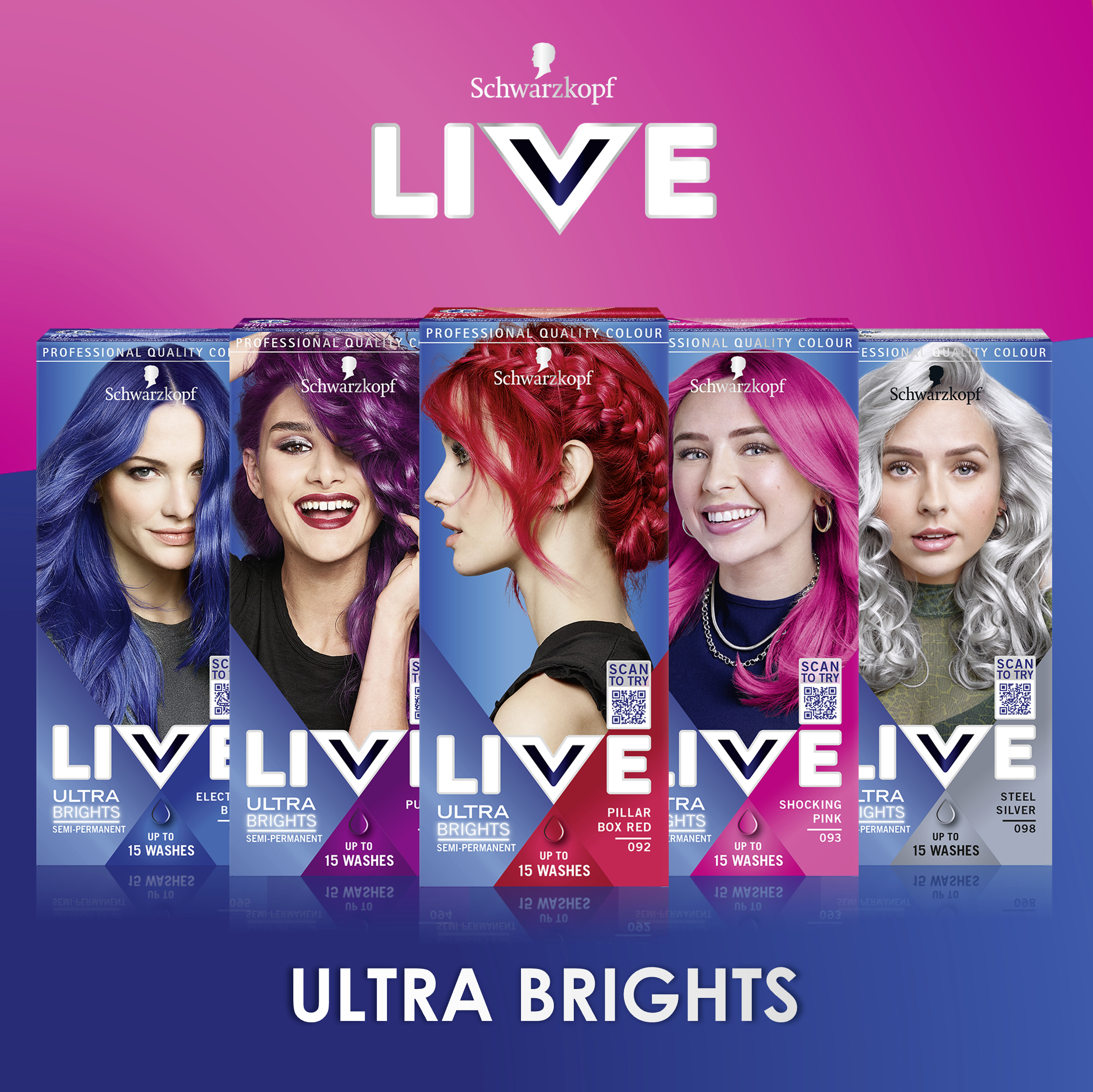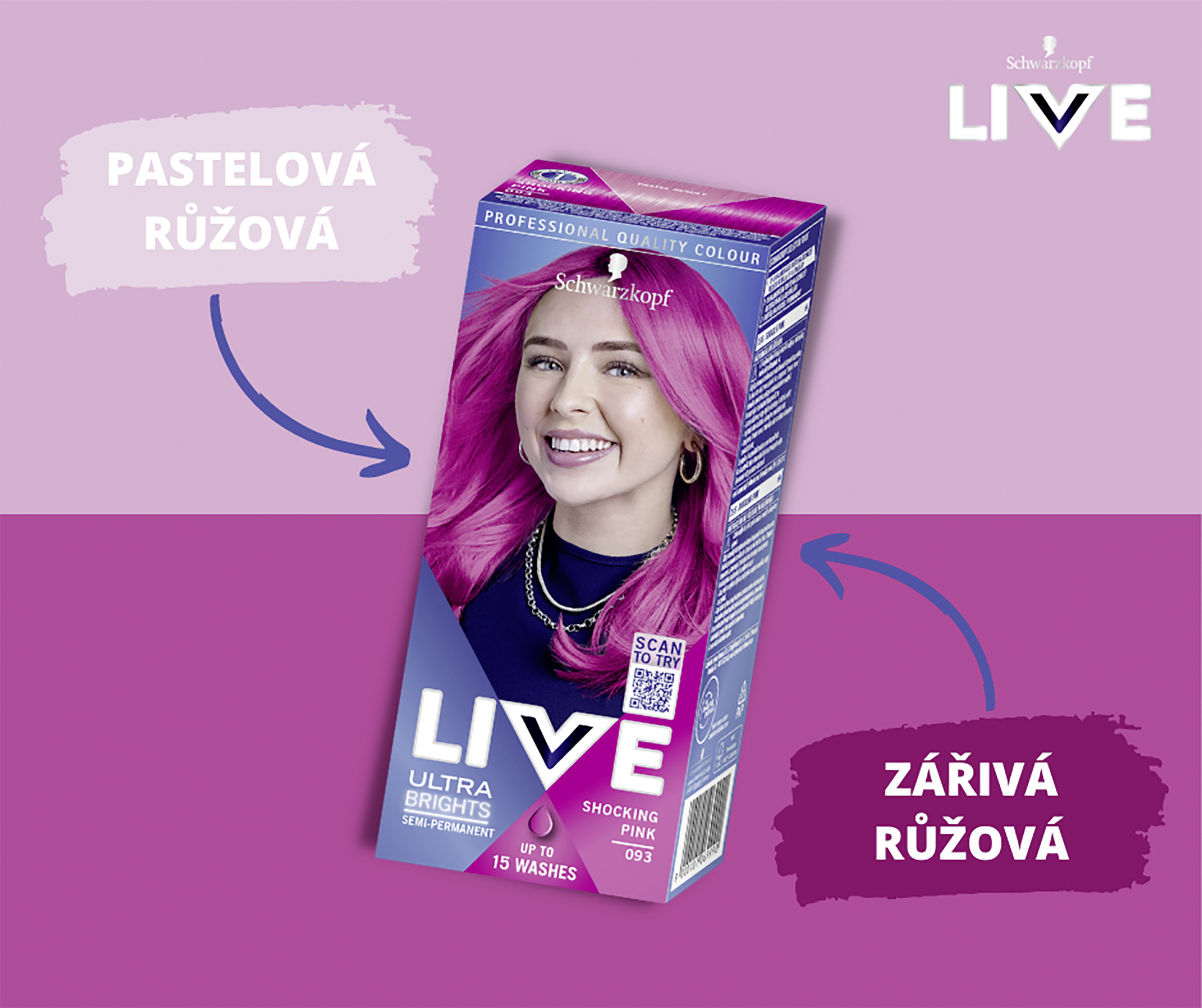 Probuďte svoji kreativitu s barvami na vlasy Schwarzkopf LIVE a objevte širokou řadu trendy odstínů - od smývatelných po permanentní, od pastelových po super intenzivní a zářivé, pro každého a pro každou příležitost. Vyjádřete své já pomocí mnoha barevných možností. Vaše barva, váš styl!