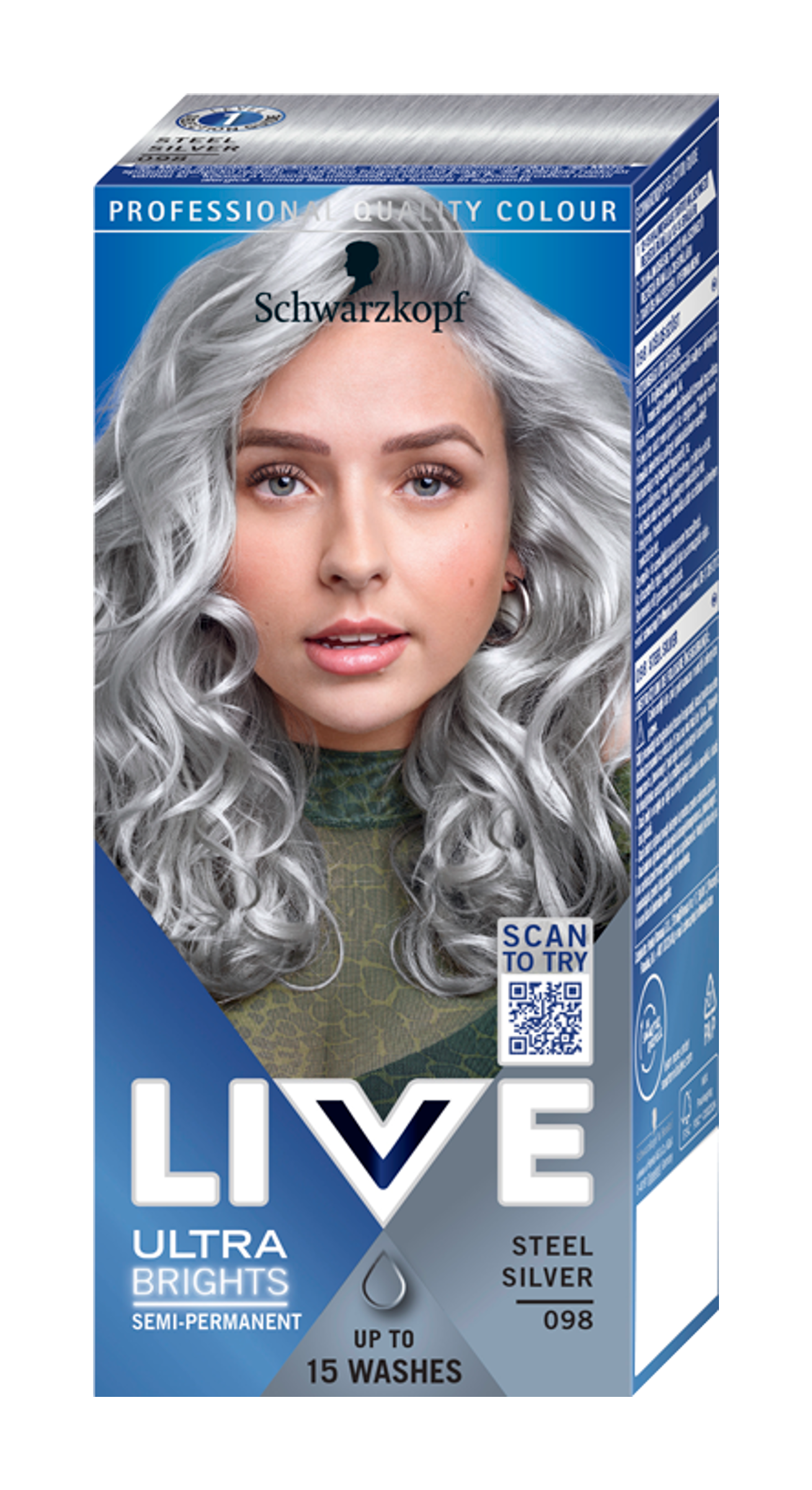 Barva na vlasy Live Ultra Brights 098 ocelově stříbrná
