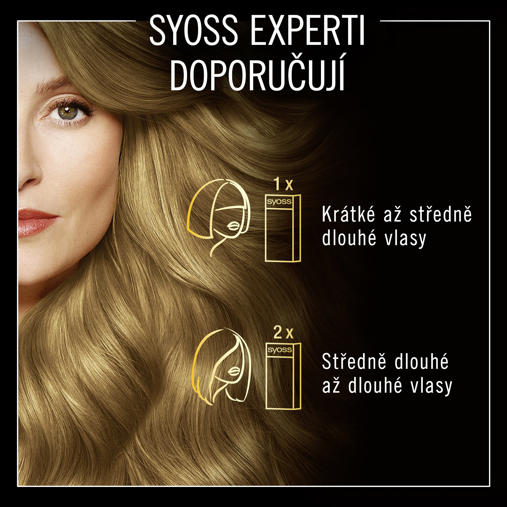 Odborné poradenství pro barvení vlasů. Přesná aplikace 1x Krátké až středně dlouhé vlasy. 2x Středně dlouhé až dlouhé vlasy. Výsledek viz obal.