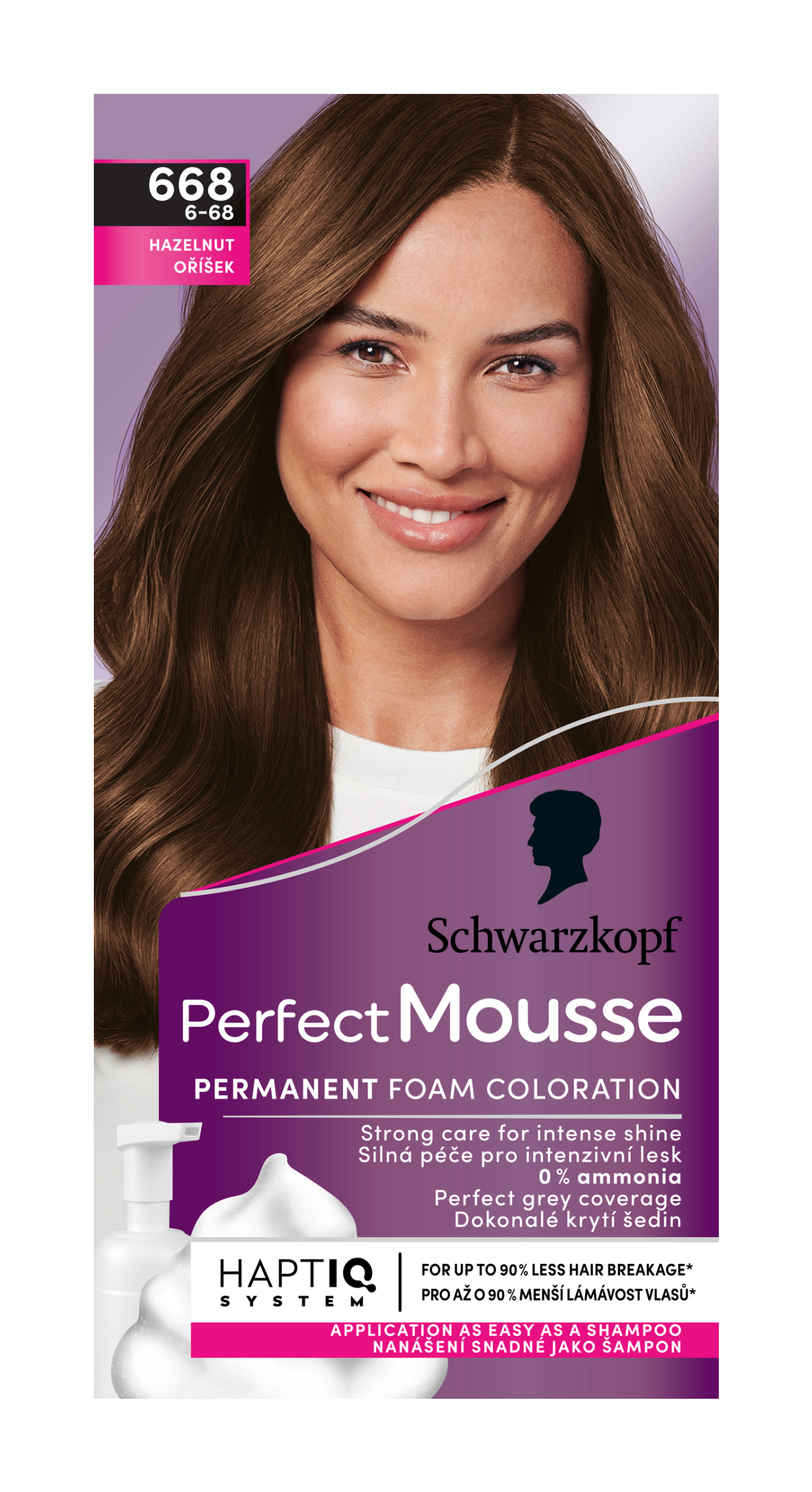 Domácí barvení vlasů s barvami Schwarzkopf Perfect Mousse bez amoniaku je neuvěřitelně jednoduché. Hustá pěnová textura zajišťuje snadnou a rovnoměrnou aplikaci bez stékání, stejně jednoduchou jako použití šamponu! Díky speciálnímu aplikátoru můžete navíc barvicí směs dávkovat rovnou do dlaně. Barevná pěna v kombinaci s pečujícím balzámem snižuje lámavost vlasů až o 90 %*, přináší zdravě vypadající barevné výsledky, dokonalé krytí šedin, intenzivní lesk vlasů a silnou péči.