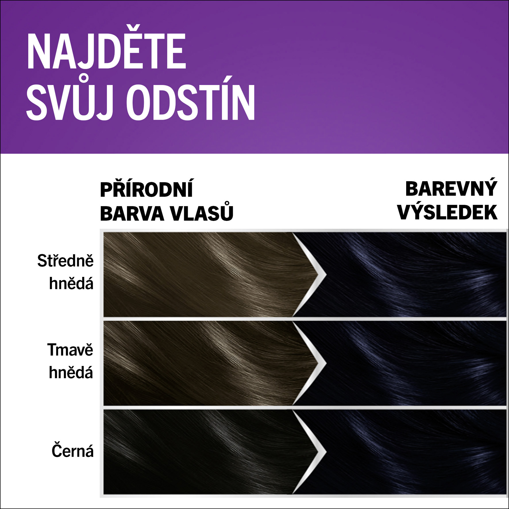 Může způsobit alergickou reakci - dodržujte bezpečnostní pokyny. BEZPEČNOSTNÍ POKYNY: Barvy na vlasy mohou způsobit těžké alergické reakce. Přečtěte si instrukce a řiďte se jimi. Tento výrobek není určen k používání pro osoby mladší 16 let. Dočasné tetování černou hennou může zvýšit riziko alergie. Nebarvěte si vlasy, pokud: - máte vyrážku na obličeji nebo citlivou, podrážděnou a poškozenou pokožku hlavy, - jste již někdy zaznamenali jakoukoliv reakci po barvení vlasů, - jste v minulosti zaznamenali reakci na dočasné tetování černou hennou. Obsahuje peroxid vodíku, fenylendiaminy (toluendiaminy) a resorcinol. Složení výrobku - viz spodek krabičky. Zamezte styku s očima. Při zasažení očí okamžitě vypláchněte vodou. Nepoužívejte k barvení řas a obočí. Po použití vlasy důkladně opláchněte. Používejte vhodné rukavice. Proveďte varovný test na alergii 48 hodin před každým použitím barvy na vlasy, a to i v případě, že jste barvy na vlasy používali již dříve. Proto nezapomeňte zakoupit výrobek 48 hodin před samotným použitím. V případě jakýchkoliv reakcí či pochybností se, prosím, ještě před použitím jakékoliv barvy na vlasy poraďte s lékařem. Uchovávejte mimo dosah dětí.