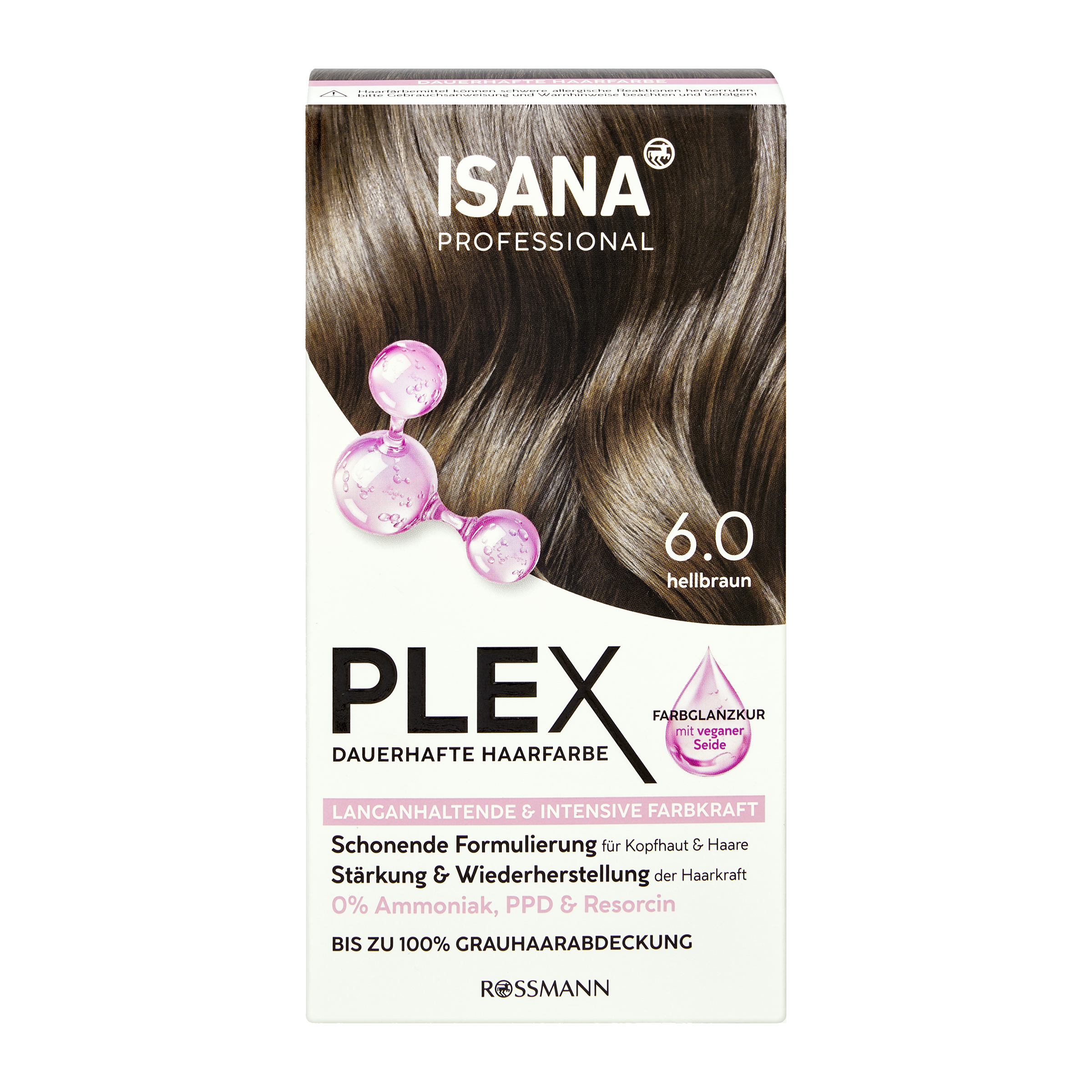 Permanentní barva na vlasy ISANA Professional Plex nabízí dokonalé krytí šedin a dlouhotrvající barevný výsledek spolu s příjemnou vůní. Permanentní barva na vlasy ISANA Professional Plex s inovativním veganským hedvábím okamžitě posiluje vlasy, zapečetí je a poskytuje perfektní upravitelnost se svěžím, zářivým leskem.