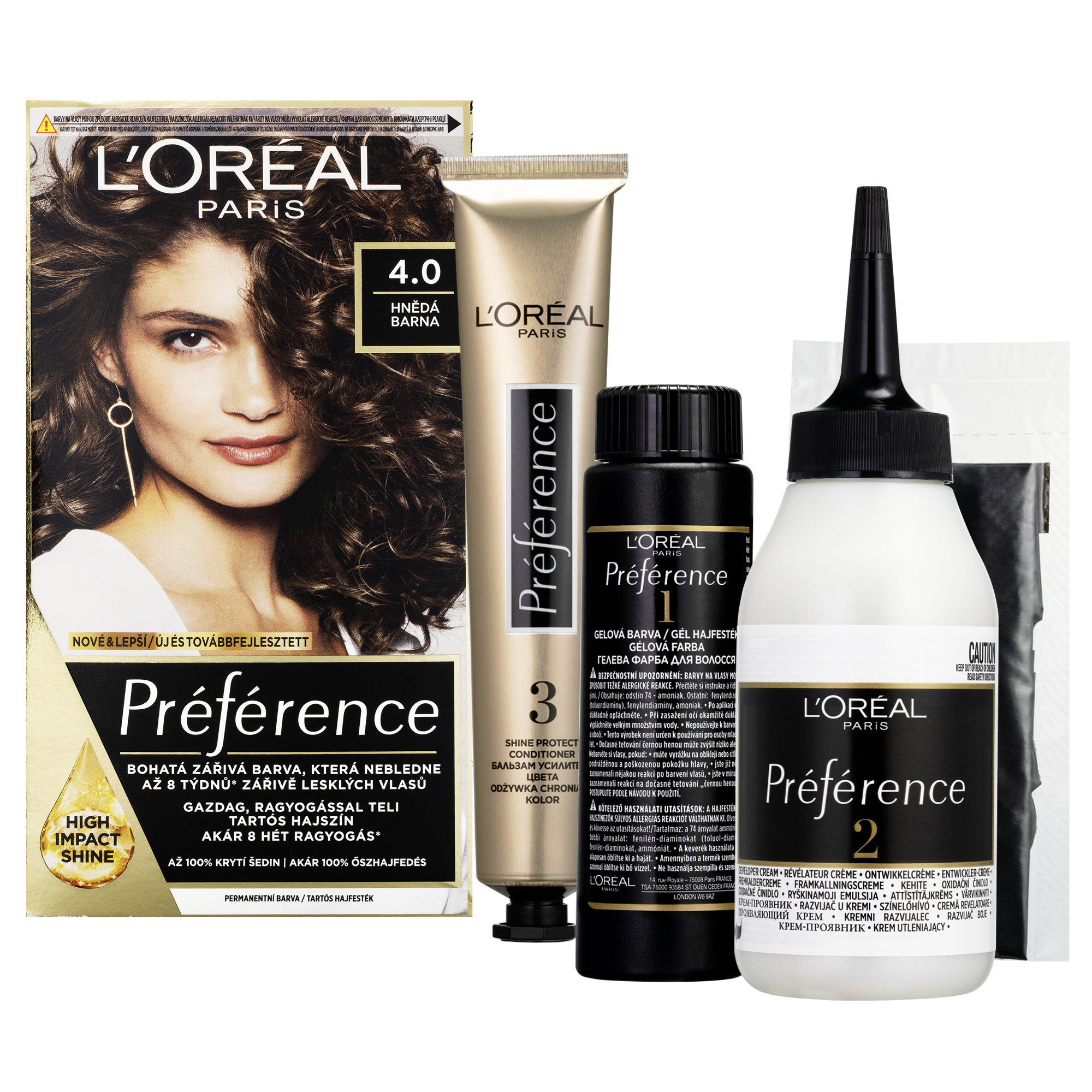 Permanentní barva na vlasy Préférence kryje šediny a přináší bohatou zářivou barvu, která nebledne. L'Oréal Paris Préférence je obohacena o Fade-Defying SYSTEMTM technologii proti vyblednutí barvy. Vysoká koncentrace dlouhotrvajících barvících složek v kombinaci s novou olejovo-gelovou texturou poskytuje až 8 týdnů* zářivou barvu s vysokým leskem bez vyblednutí.