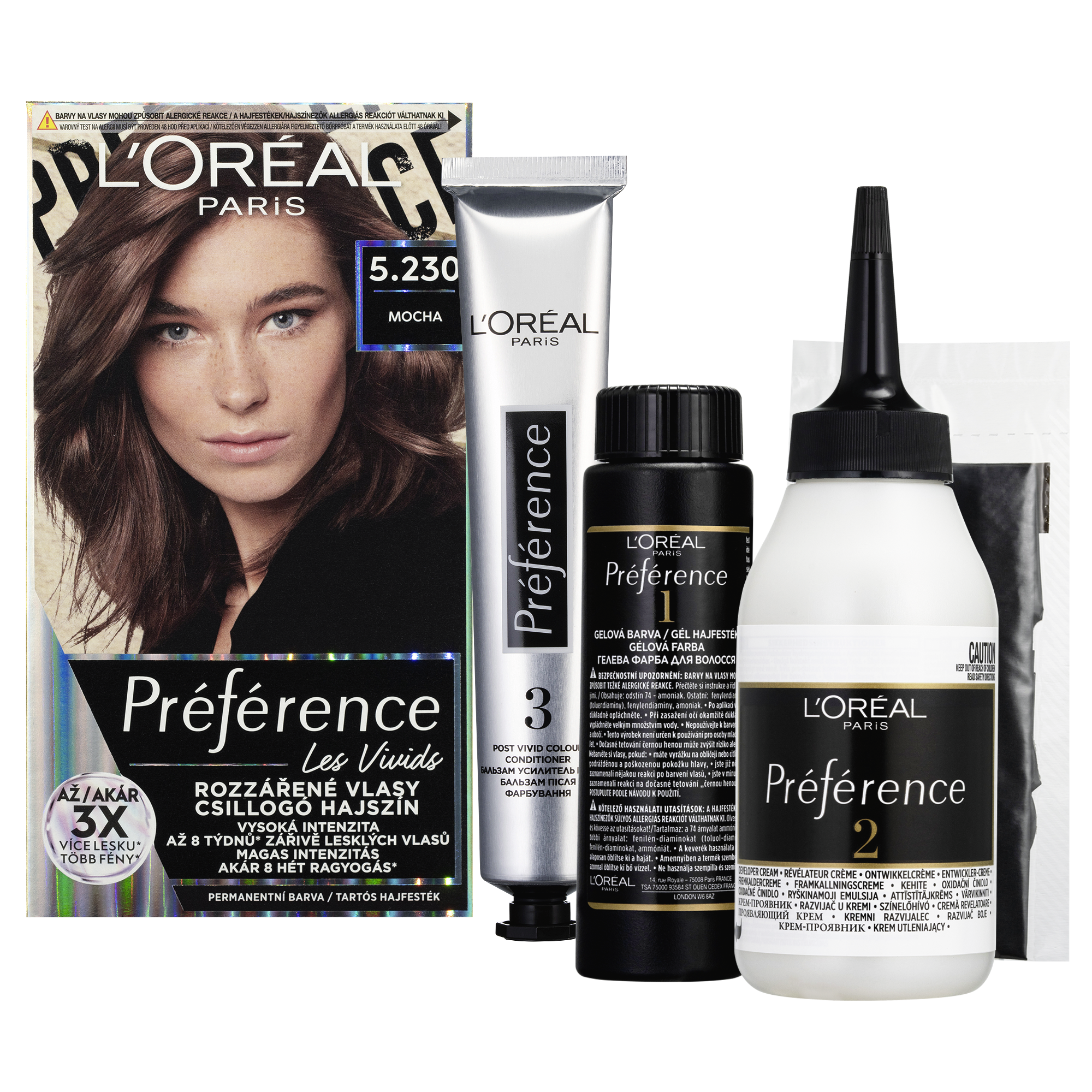Naše nejpokročilejší inovace v barvení, nyní i ve výrazných odstínech. Permanentní barva na vlasy Préférence obsahuje čistá barviva vybraná našimi experty na barvení pro zářivý výsledek s vysokou intenzitou. Vytvořena pro všechny typy vlasů. Obsahuje 150 ml směsi pro rychlou a rovnoměrnou aplikaci.