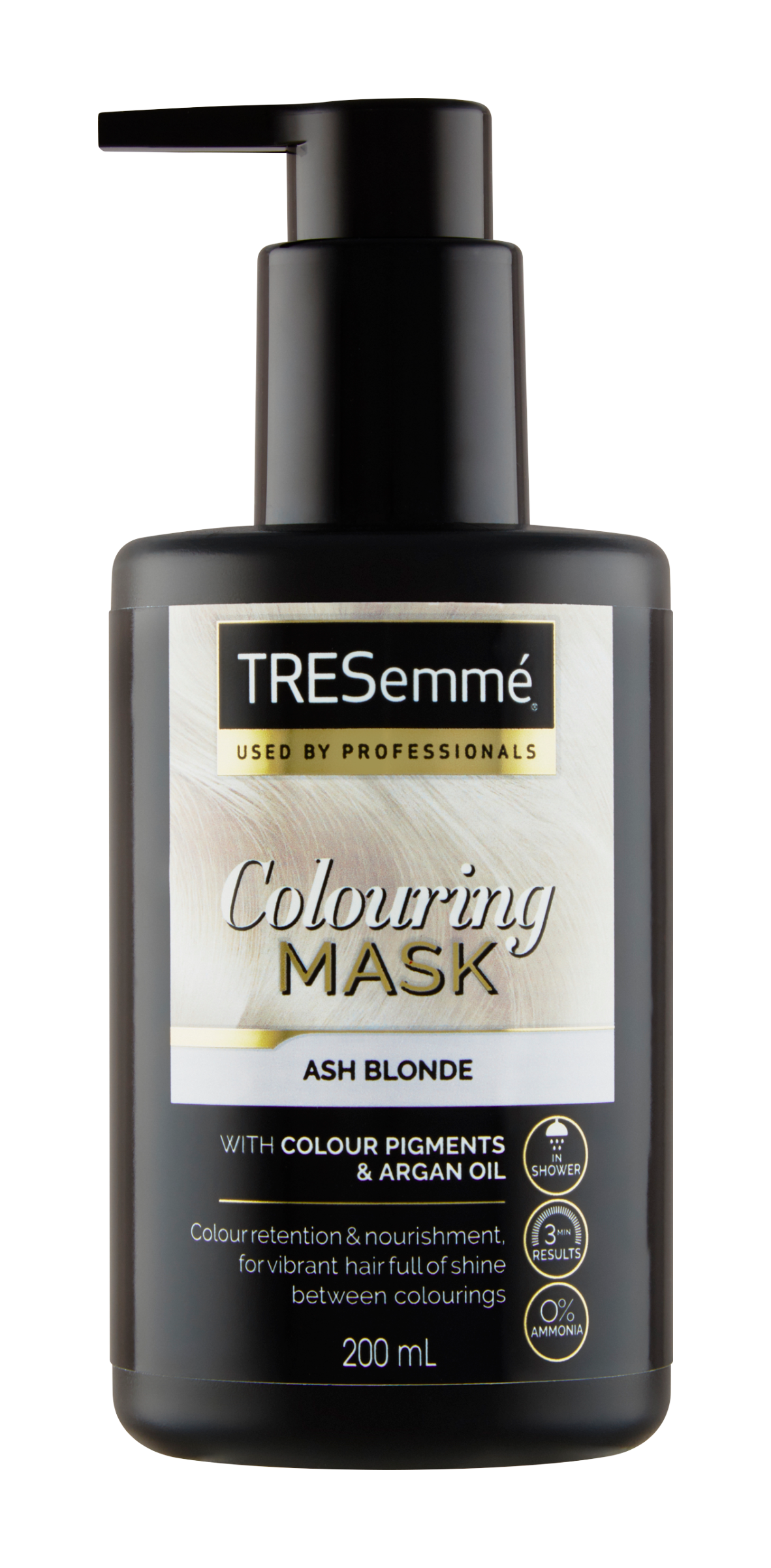 Chcete oživit svoji barvu mezi domácím barvením či před další návštěvou salonu a hledáte vhodný produkt? Vyzkoušejte nové TRESemmé barvící masky, které šetrně oživí barvu Vašich vlasů a díky obsahu UV filtru a arganovému oleji také dodají vlasům lesk. Díky praktickému balení je jejich aplikace velmi snadná a rychlá. Nemusíte barvu složitě míchat ani masku aplikovat v rukavicích. Barvící maska TRESemmé Ash Blonde je vhodná pro studené odstíny blond.