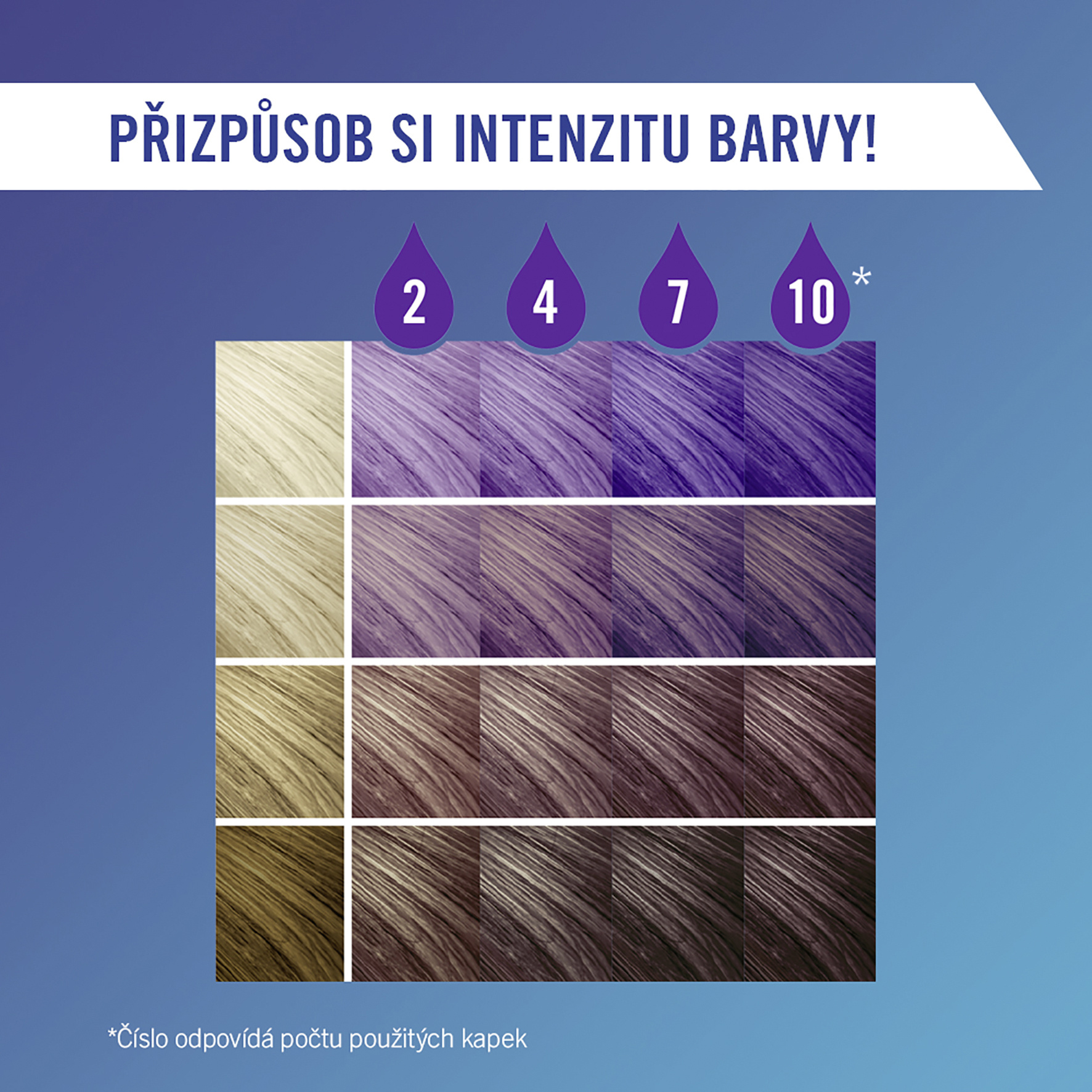 - Přizpůsobitelná intenzita barvy - čím více kapek, tím intenzivnější barevný výsledek