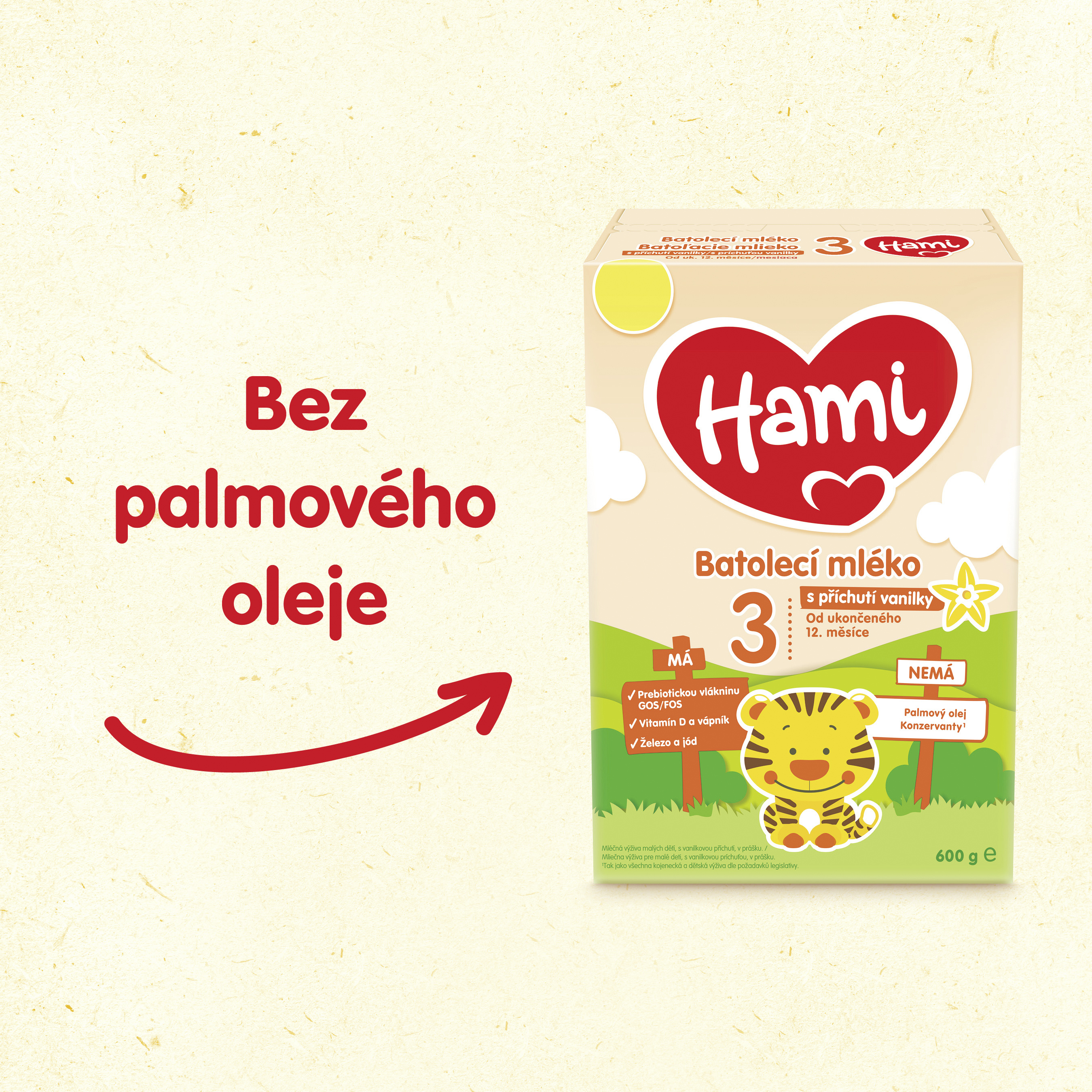 • Palmový olej – všechna mléka Hami 2–5 jsou bez palmového oleje.