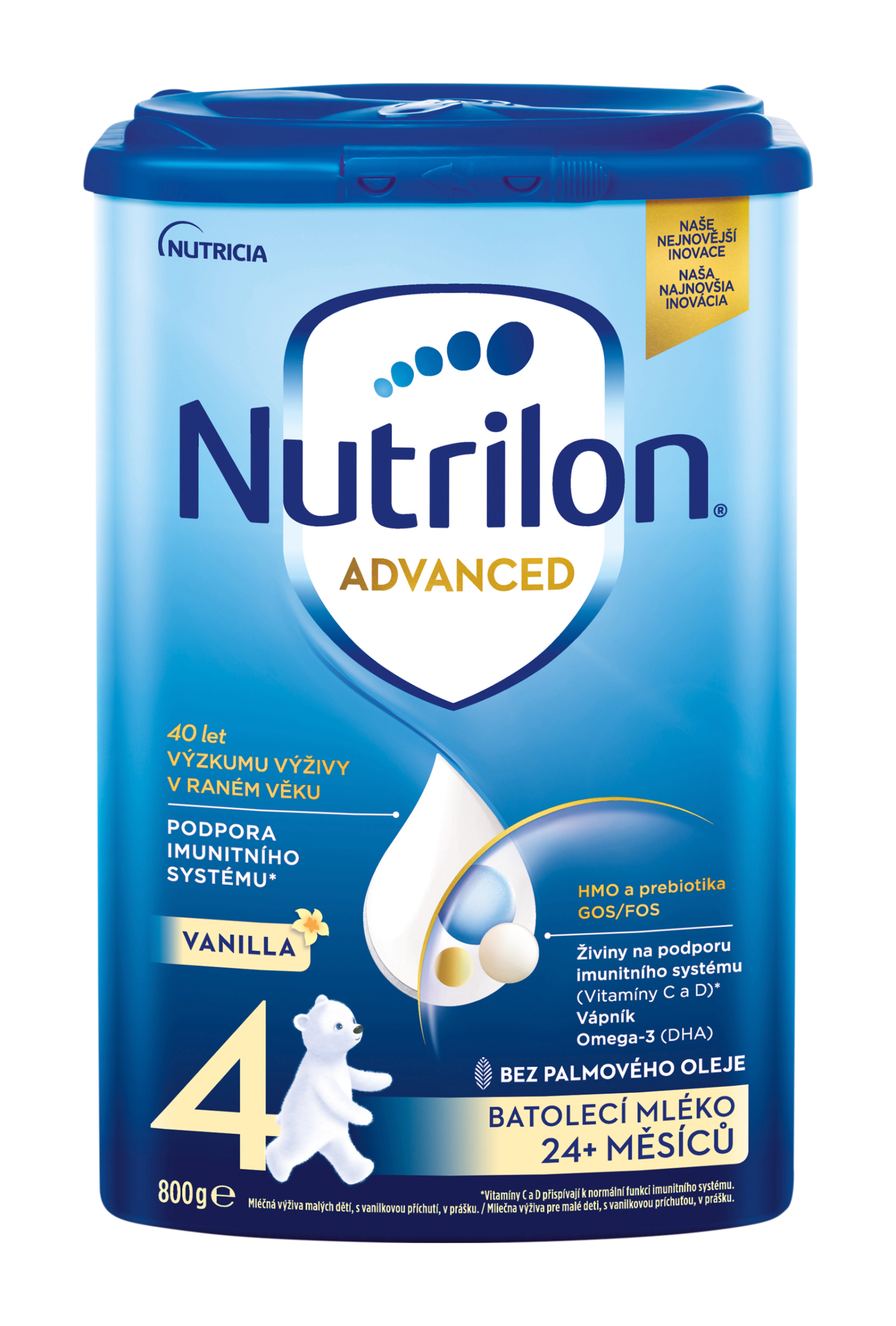 Výrobek je určen pro výživu dětí od 2 let věku. Nutrilon 4 Advanced Vanilla má být součástí smíšené a vyvážené stravy dítěte a není náhradou mateřského mléka. Pro zdraví dětí je důležité důsledné dodržování návodu na přípravu i uvedených doporučení. Nevhodné pro děti do 1 roku věku. Kojení je pro děti nejlepší. Podporujeme doporučení WHO - plné kojení v prvních 6 měsících věku a pokračování až do 2 let a dále, spolu se zaváděním bezpečné a vhodné doplňkové stravy. Mléčná výživa malých dětí, v prášku. Připravenou stravu spotřebujte do 2 hodin, poté zlikvidujte. Neohřívejte v mikrovlnné troubě, hrozí opaření dítěte. Nikdy nepřidávejte do výživy více odměrek, než je stanoveno, ani cokoliv jiného. Dohlédněte na hygienu zoubků.
