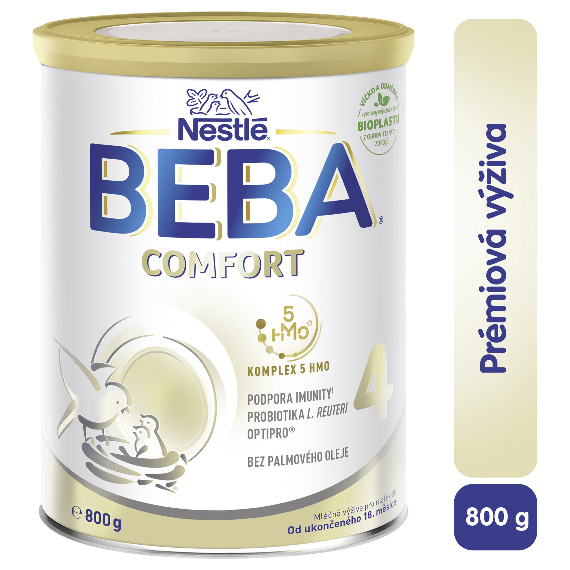 Důležité upozornění: Nestlé BEBA COMFORT 4, 5 HMO mléčná výživa pro malé děti, s bakteriemi mléčného kvašení L. reuteri, obohacená vitamíny a minerálními látkami. Instantní. Od ukončeného 18. měsíce. Není určena pro výživu kojenců do 12 měsíců. Potravina by mela být pouze součástí smíšené a vyvážené stravy dítěte. Komplex 5 HM-O je směs pěti oligosacharidů (2´FL/DFL, LNT, 6´SL, 3´SL) po vzoru mateřského mléka. Vitamíny A, C, D se podílejí na normálním fungovaní imunitního systému. OPTIPRO® je speciální proces k získání směsi bílkovin s cílem přiblížit se mateřskému mléku. L reuteri jsou bakterie, které se nacházejí ve střevní mikroflóře kojených dětí. COMFORT pro spokojené bříško vašich miminek. Bez palmového oleje.