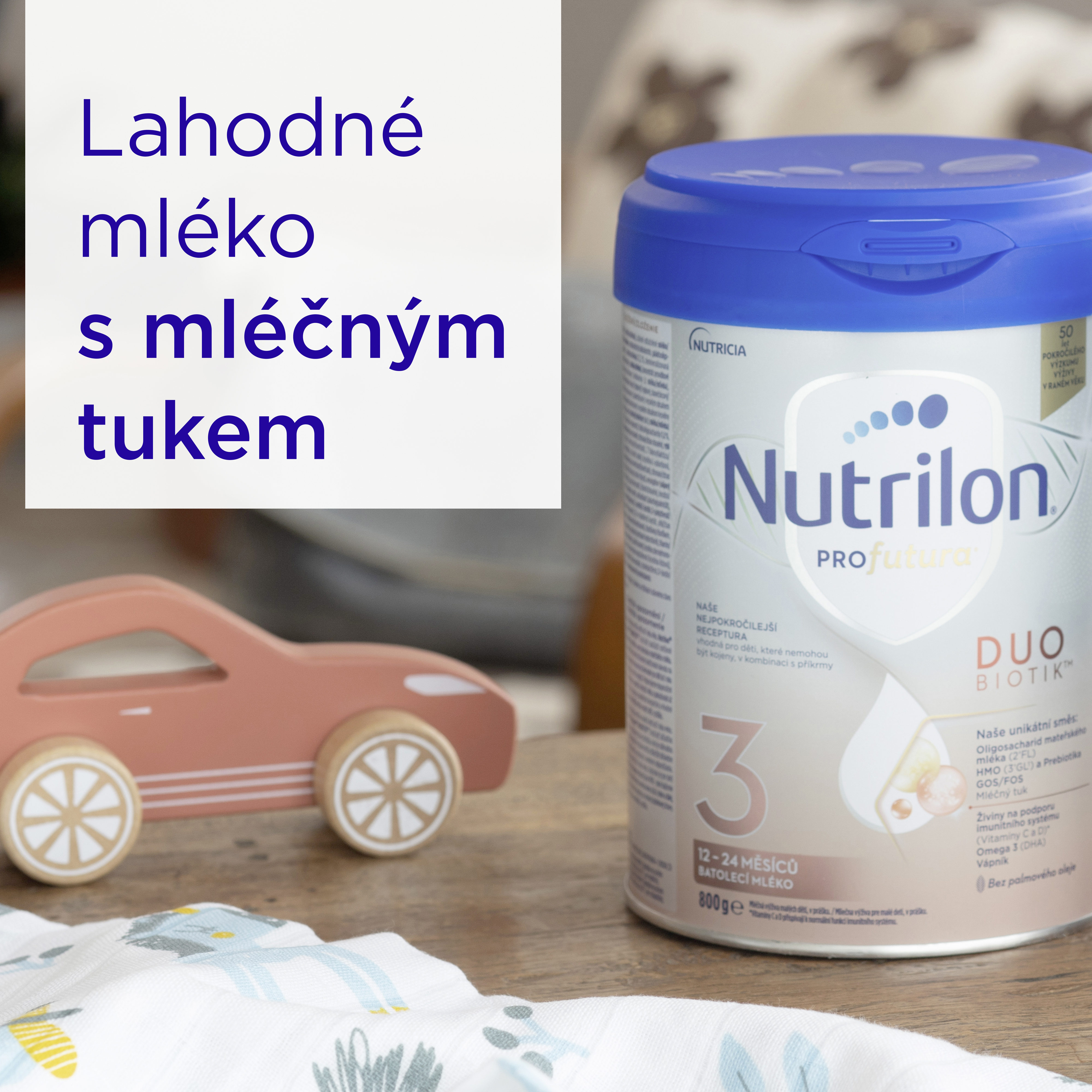 Prémiové batolecí mléko pro děti od ukončeného 12. měsíce, s mléčným tukem pro lahodnější krémovou chuť a s jedinečnou kombinací oligosacharidů, prebiotik a živin pro podporu imunit