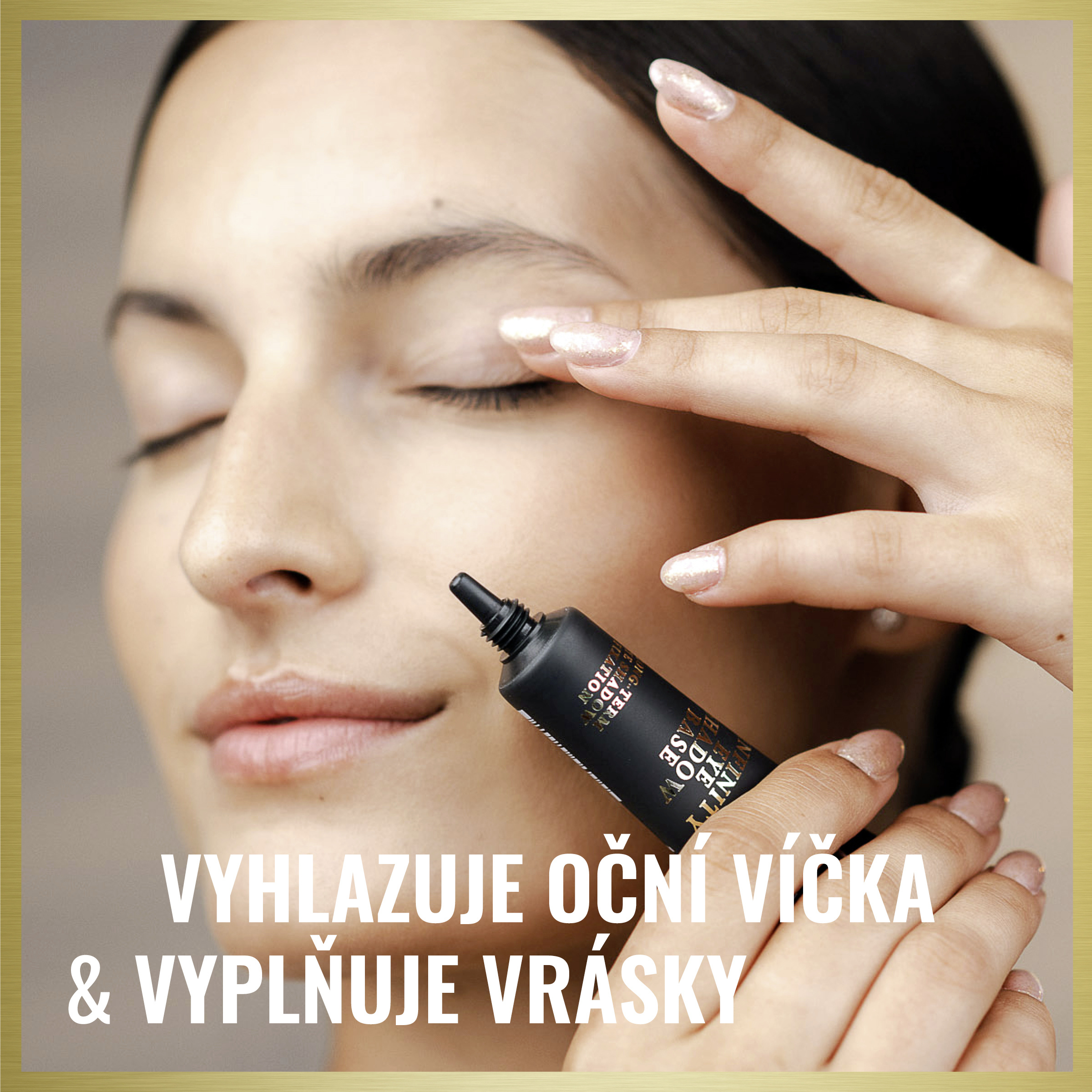 Příjemné krémové složení zmatní okolí očí a dokonale ho připraví na aplikaci očních stínů. Dlouhodobě fixuje oční stíny a viditelně prodlužuje bezchybný vzhled očního make-upu. Zvyšuje přilnavost očních stínů k pokožce a udržuje je na svém místě. Zamezuje slévání stínů v očním záhybu. Lehká silikonová textura vyhlazuje oční víčka, vyplňuje vrásky a minimalizuje jejich viditelnost.1 univerzální poloprůhledný odstín.