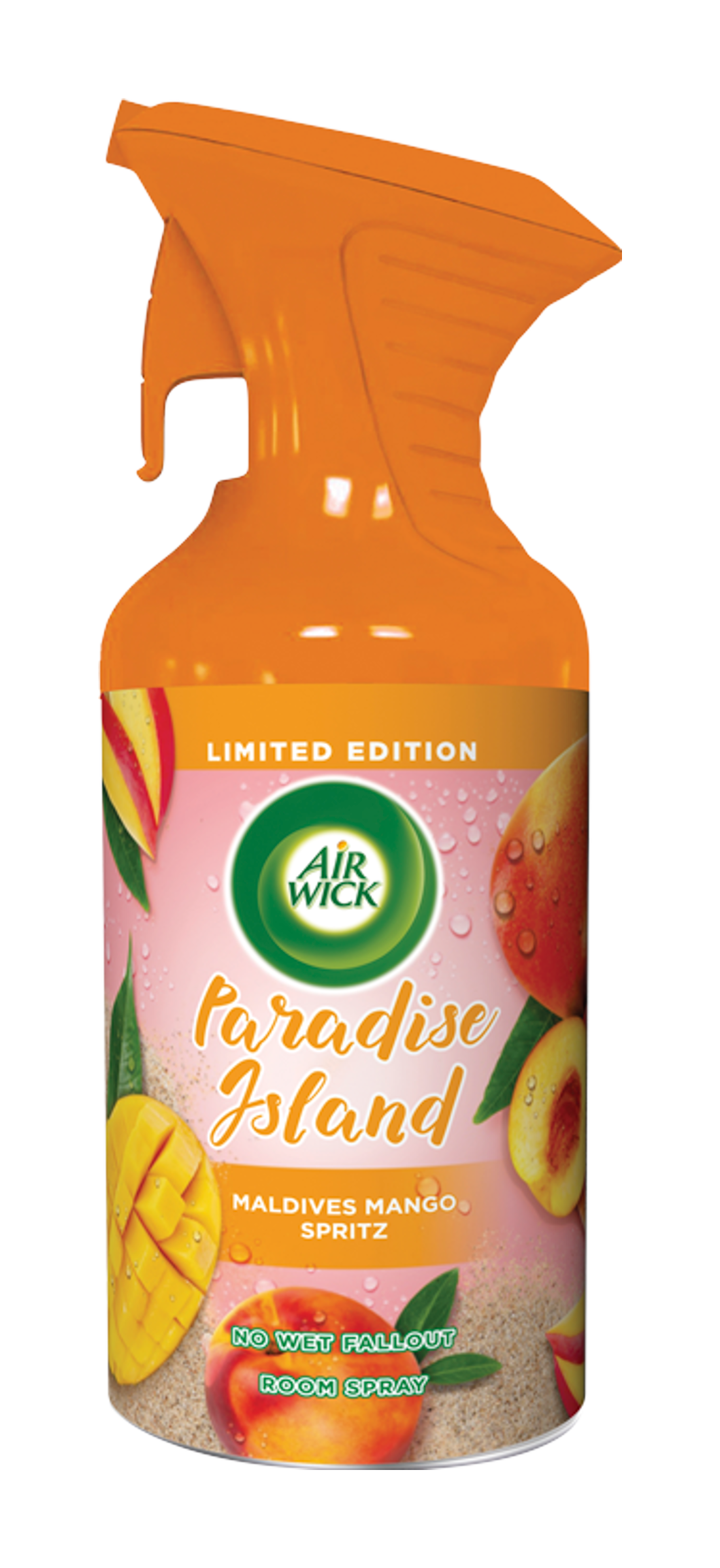 Air Wick osvěžovač vzduchu - vůně manga z Malediv. Nechte se odnášet pryč na vlnách a užijte si dechberoucí výhledy z pláže ostrova Maui. Dívejte se, jak se tříští třpytivé vlny, zatímco se ve vzduchu vznáší vůně šťavnatého manga.