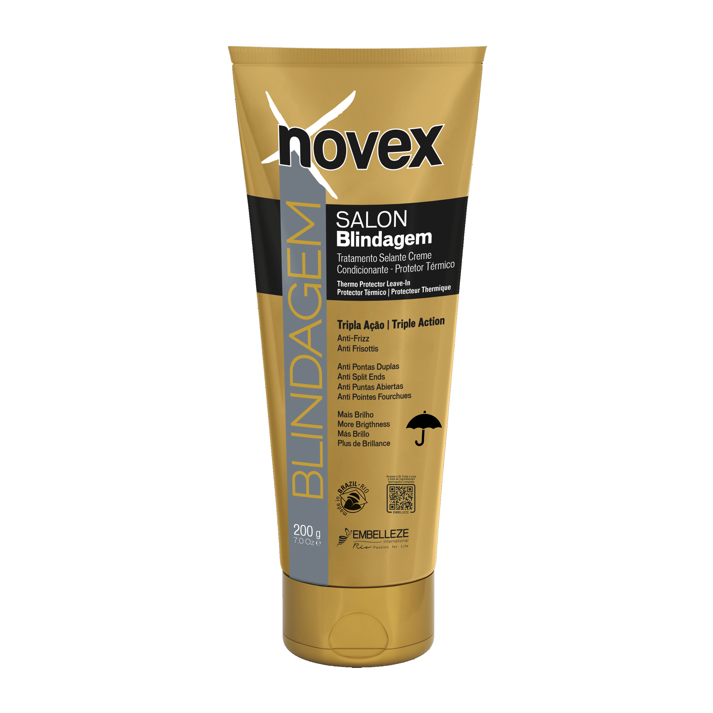 Bezoplachový krém Novex Thermo Protector vytváří ochrannou bariéru, která minimalizuje poškození vlasů a dodává jim více lesku. Působí proti krepatění a roztřepeným konečkům, zatímco chrání před vnějšími vlivy, jako je znečištění, chemické úpravy, barvení vlasů a nadměrná vlhkost. Je ideální k aplikaci před použitím difuzéru, fénu nebo žehličky, čímž pomáhá zachovat zdraví a krásu vlasů.