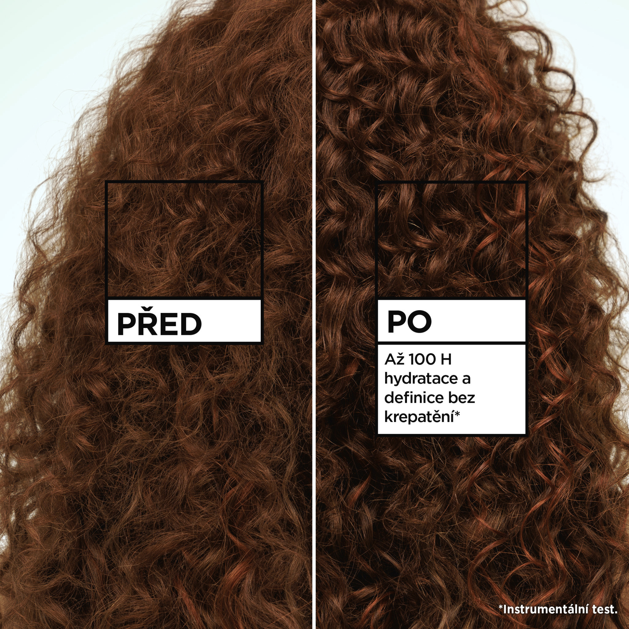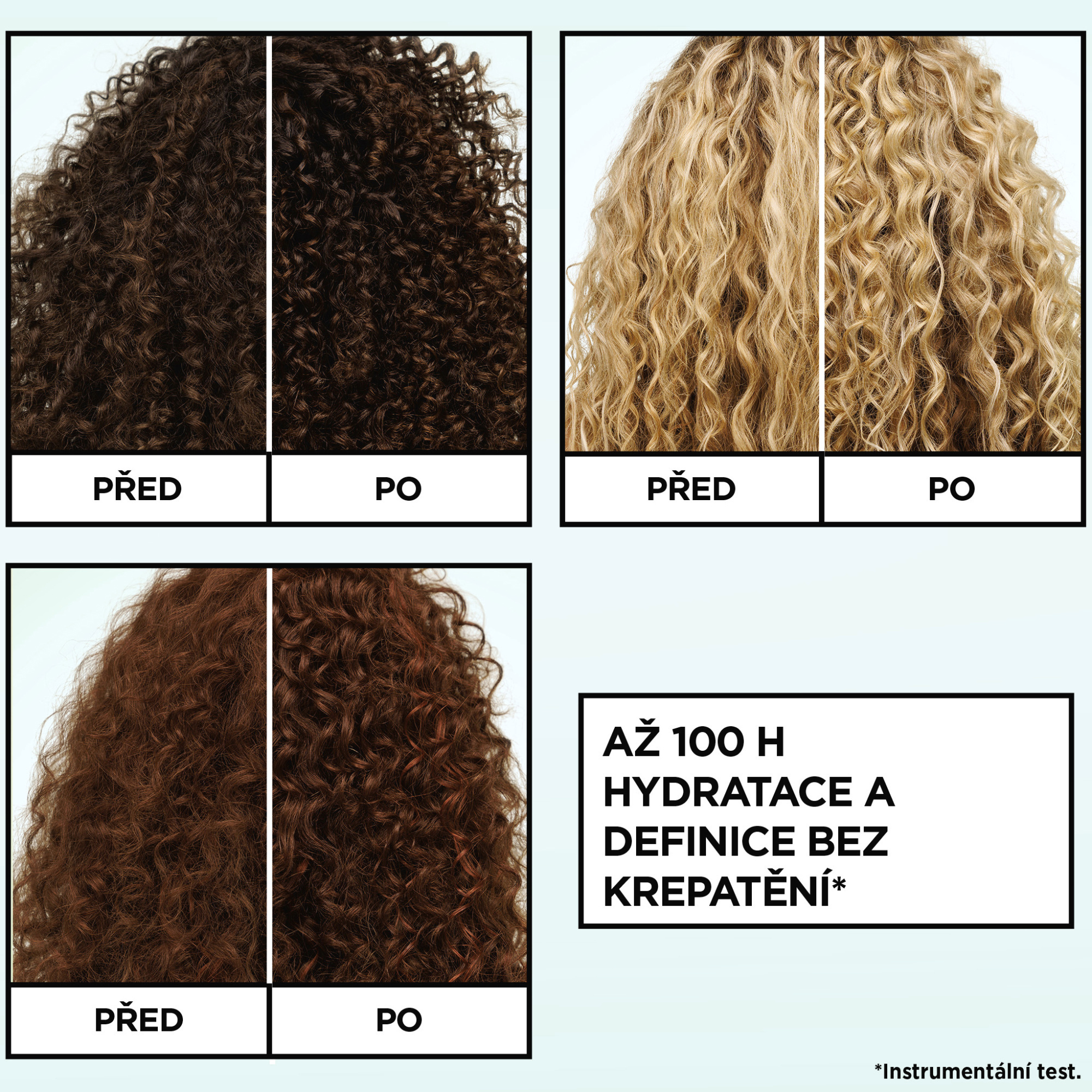 Kudrnaté vlasy mají křehkou spirálovou strukturu, která propouští vlhkost v každém zatočení. S novým hydratačním bezoplachovým krémem Garnier Fructis Curls Method krok 3 uzamkneš hydrataci a zamezíš krepatění pro dlouhotrvající definici kudrn. Obsahuje [7%] hydratační hyaluronový komplex + mastné kyseliny z bambuckého másla. Kudrny jsou viditelně transformovány s 100h hydratací a dlouhotrvající definicí bez krepatění(1).