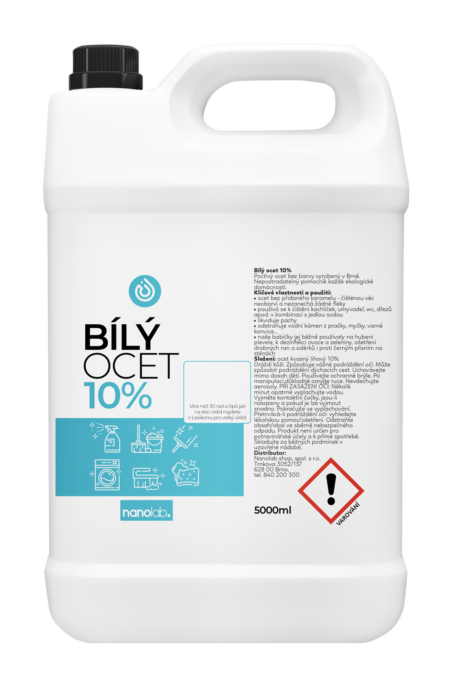 Klíčové vlastnosti a použití: - ocet bez přidaného karamelu - čištěnou věc neobarví a nezanechá žádné fleky - používá se k čištění kachliček, umyvadel, wc, dřezů apod. v kombinaci s jedlou sodou - likviduje pachy - odstraňuje vodní kámen z pračky, myčky, varné konvice.... - naše babičky jej běžně používaly na hubení plevele, k dezinfekci ovoce a zeleniny, ošetření drobných ran a oděrků i proti černým plísním na stěnách.