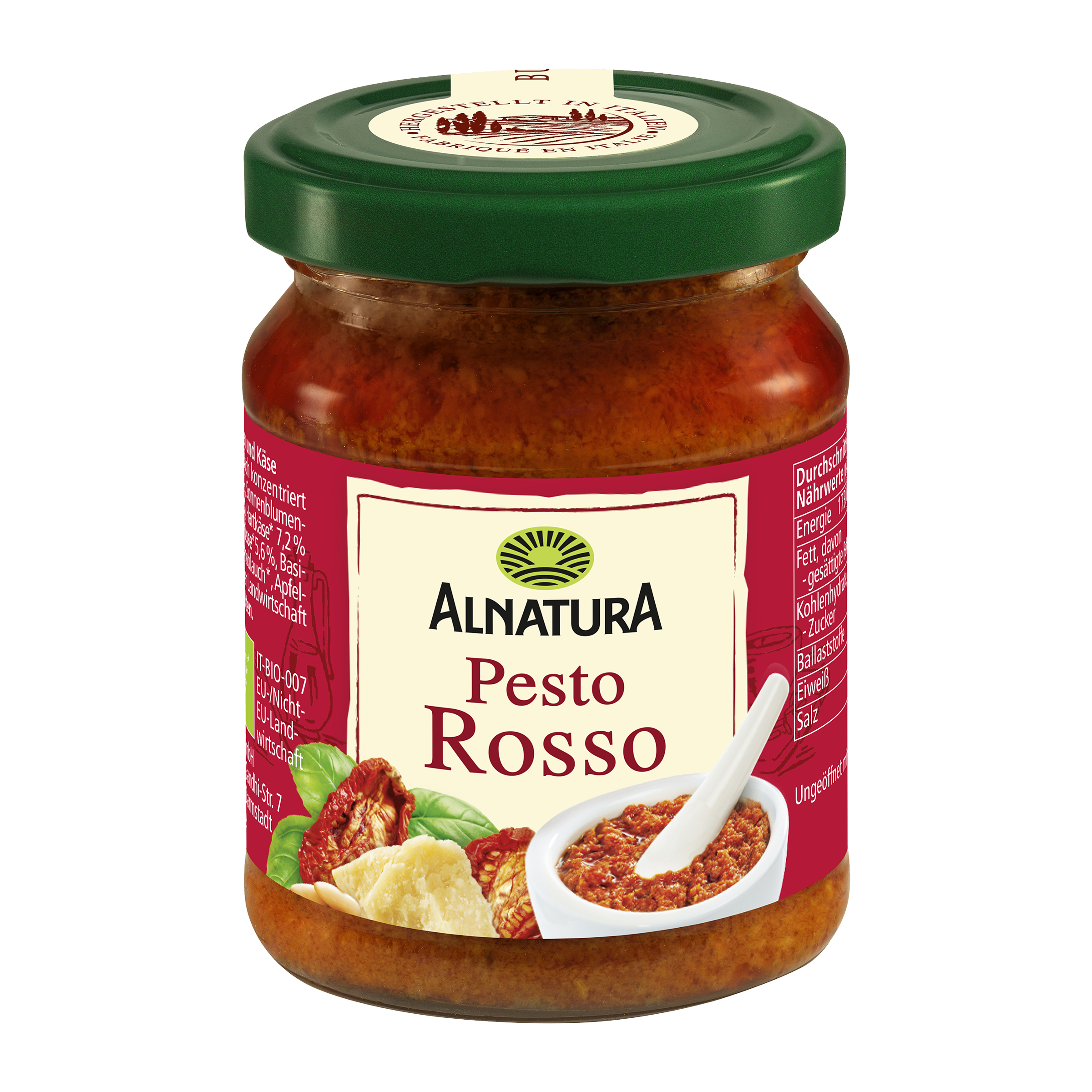 Od každodenního stresu se k italskému pocitu pohody dostanete jen za dobu, kdy se těstoviny vaří. Toto rajčatové pesto s intenzivní ovocně-kořeněnou chutí se hodí k těstovinám, polévkám i dipům. O plnou chuť se postará rajčatový protlak a sušená rajčata, stejně jako extra panenský olivový olej, tvrdý sýr a několik dalších ingrediencí. Všechny ingredience pro Alnatura Pesto Rosso vyrobené v Itálii pocházejí z ekologického zemědělství. Po otevření zalijte olejem a uchovávejte v chladničce.