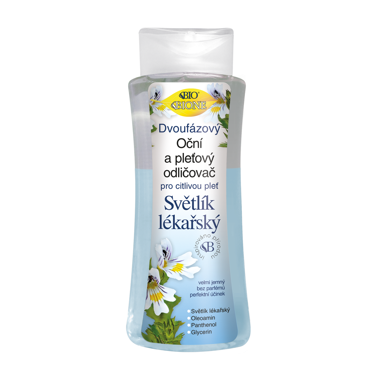 Na suché a mastné stíny a make-up. Ojedinělý prostředek k odlíčení a vyčištění pokožky víček, očních partií i celého obličeje. Neobsahuje žádné dráždivé parfémy. Odličovač očních partií a pleti obsahuje klíčovou složku, chránící jemnou pokožku okolo očí při čištění tamponem. Odličovač obsahuje unikátní oleoamin, který účinně odstraňuje suché i mastné stíny. Oleoamin ulpěný na pokožce se po chvíli rozloží a uvolní do pokožky zvláčňující tukovou složku a regenerační bioaktivní aminokyselinu, podporující syntézu kolagenu. Tím odličovač nejen rychle a šetrně bez štípání odstraní stíny, ale pleť zvláční a zregeneruje. Podpořením tvorby kolagenu je potlačena tvorba vrásek v okolí očí. Odličovač je izotonický, s optimálním fyziologickým pH. Odličovač DUO je dvoufázový. Horní olejová fáze precizně rozpustí všechny mastné složky dekorativní kosmetiky a pleť perfektně vyčistí. Zbytky olejové složky se z pleti postupně odpařují a pleť zůstane odmaštěná, čistá, vyživená, hydratovaná a ošetřená oleoaminem. Elegantní a moderní dvoufázový systém umožňuje dosažení perfektního účinku bez jakýchkoliv emulgátorů. Moderní, elegantní, efektivní. Šetrný k Vám i k přírodě.