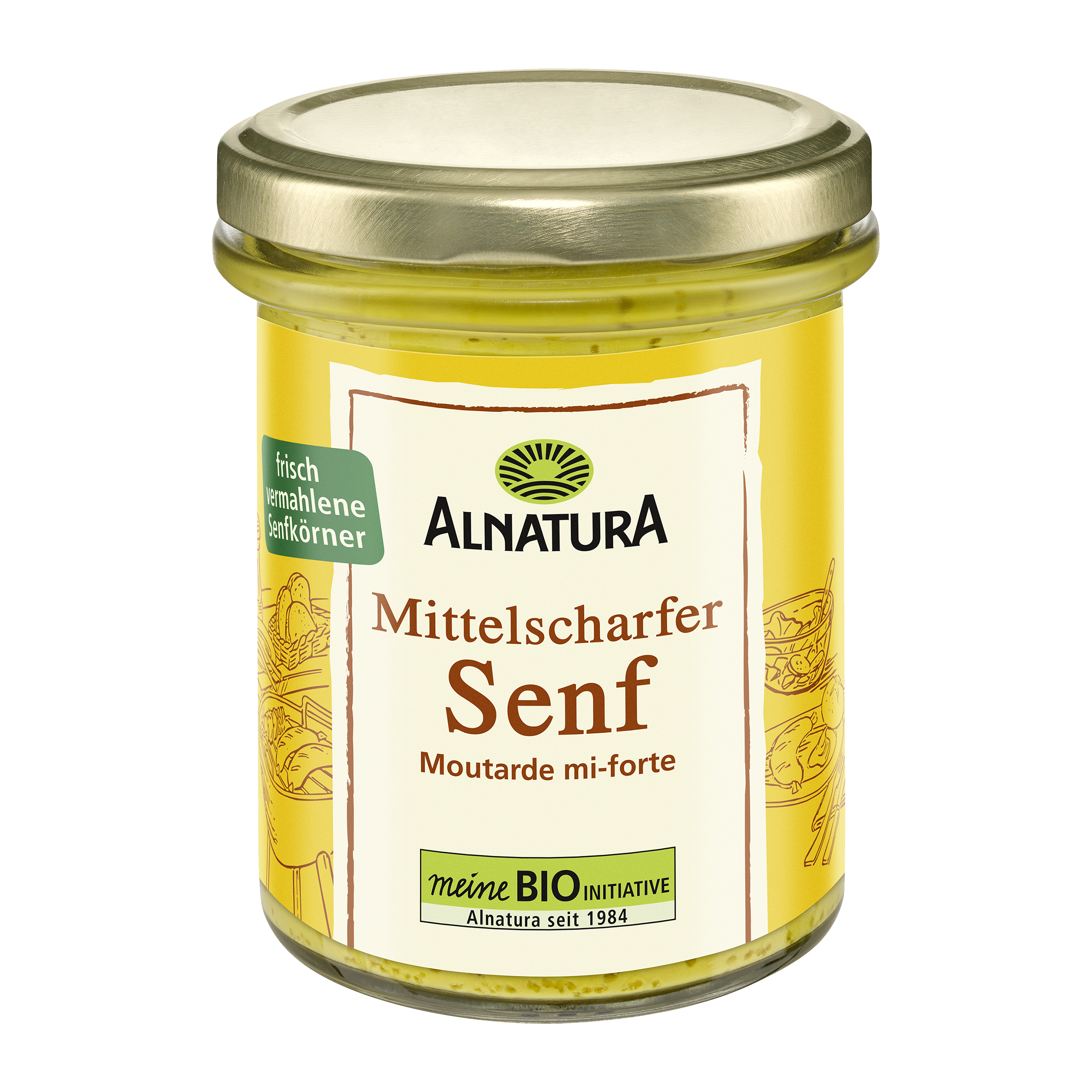 Tato bio hořčice se skvěle hodí k uzeninám, steakům a dalším grilovaným pokrmům; jemnou pikantnost jí dodávají čerstvě namletá hořčičná semínka. Středně ostrá hořčice Alnatura je vhodná i pro jemnou kuchyni, například k dodání pikantní chuti omáčkám a dipům. Složení je veganské.