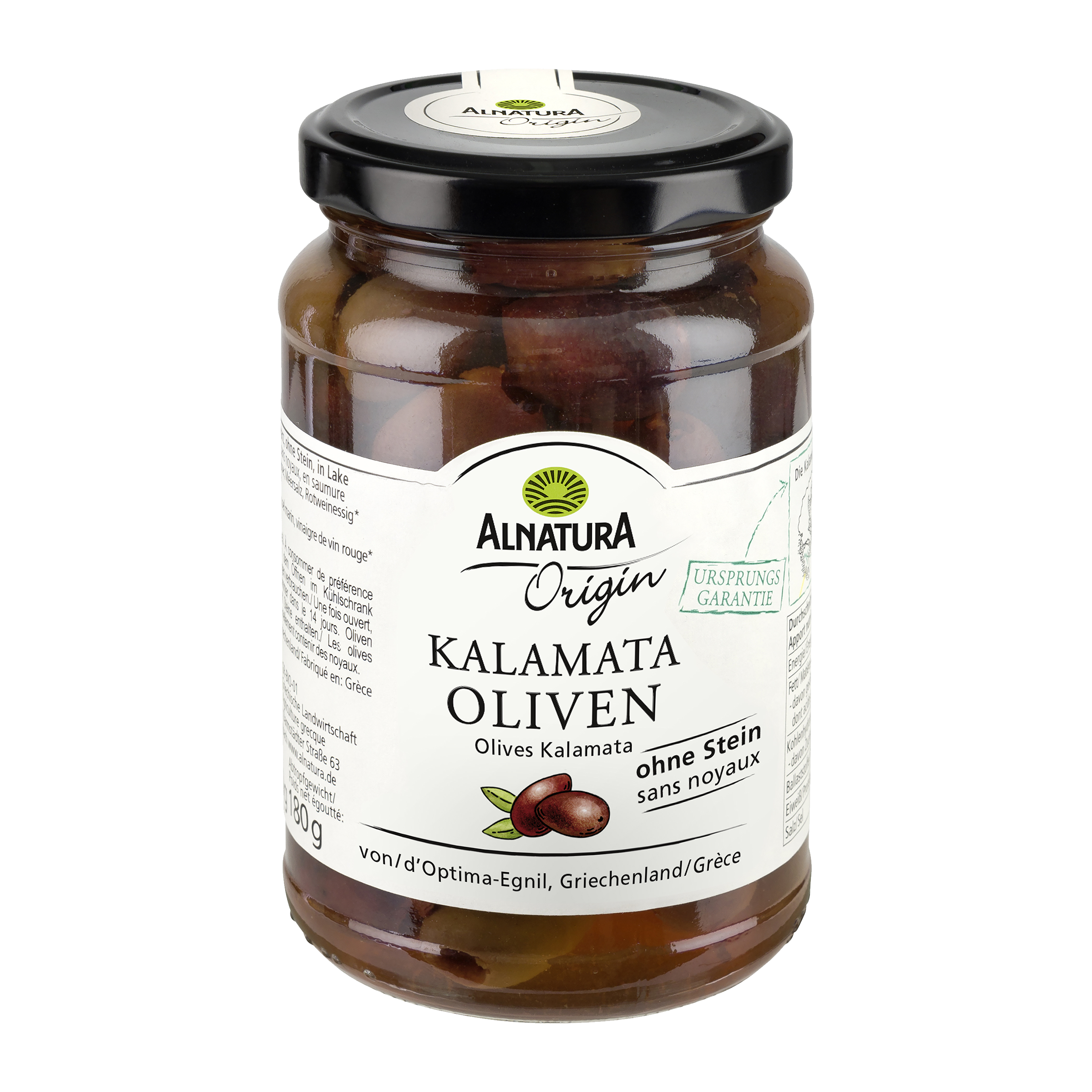 Ovocně aromatické olivy s baculatou dužinou a přirozenou tmavě fialovou až černou barvou: ideální do salátů a omáček, na pizzu nebo na středomořské antipasti. Olivy Alnatura Origin Kalamata bez pecek se sbírají ručně a pocházejí z řeckého poloostrova Peloponés, kde se pěstují v oblasti Kalamata podle ekologických směrnic - se zárukou původu. Po sklizni se olivy zbaví pecek a naloží se do nálevu z mořské soli a červeného vinného octa.