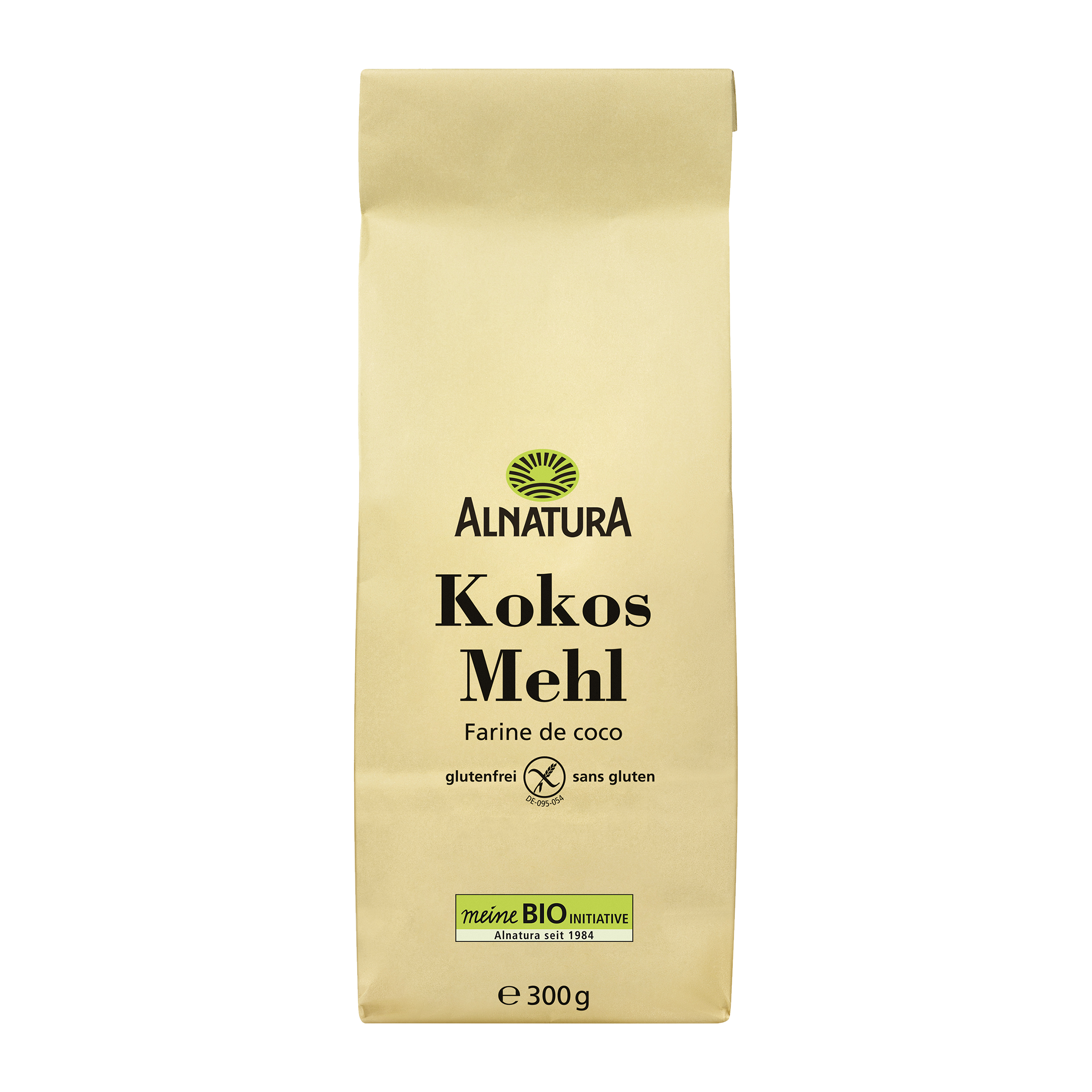 Bezlepková mouka - vyrobená z čerstvého kokosového masa, které se rozdrtí, zbaví oleje, usuší a rozemele. Díky své exotické chuti může kokosová mouka zjemnit a spojit polévky, dušená jídla a kari a je vhodná také jako aromatická přísada do koktejlů, smoothies a dezertů. Kokosová mouka Alnatura má vysoký obsah bílkovin a je bohatá na vlákninu; v pečivu a chlebu lze 20 až 30 % zrna nahradit kokosovou moukou. Kokosové ořechy pocházejí z ekologického zemědělství.
