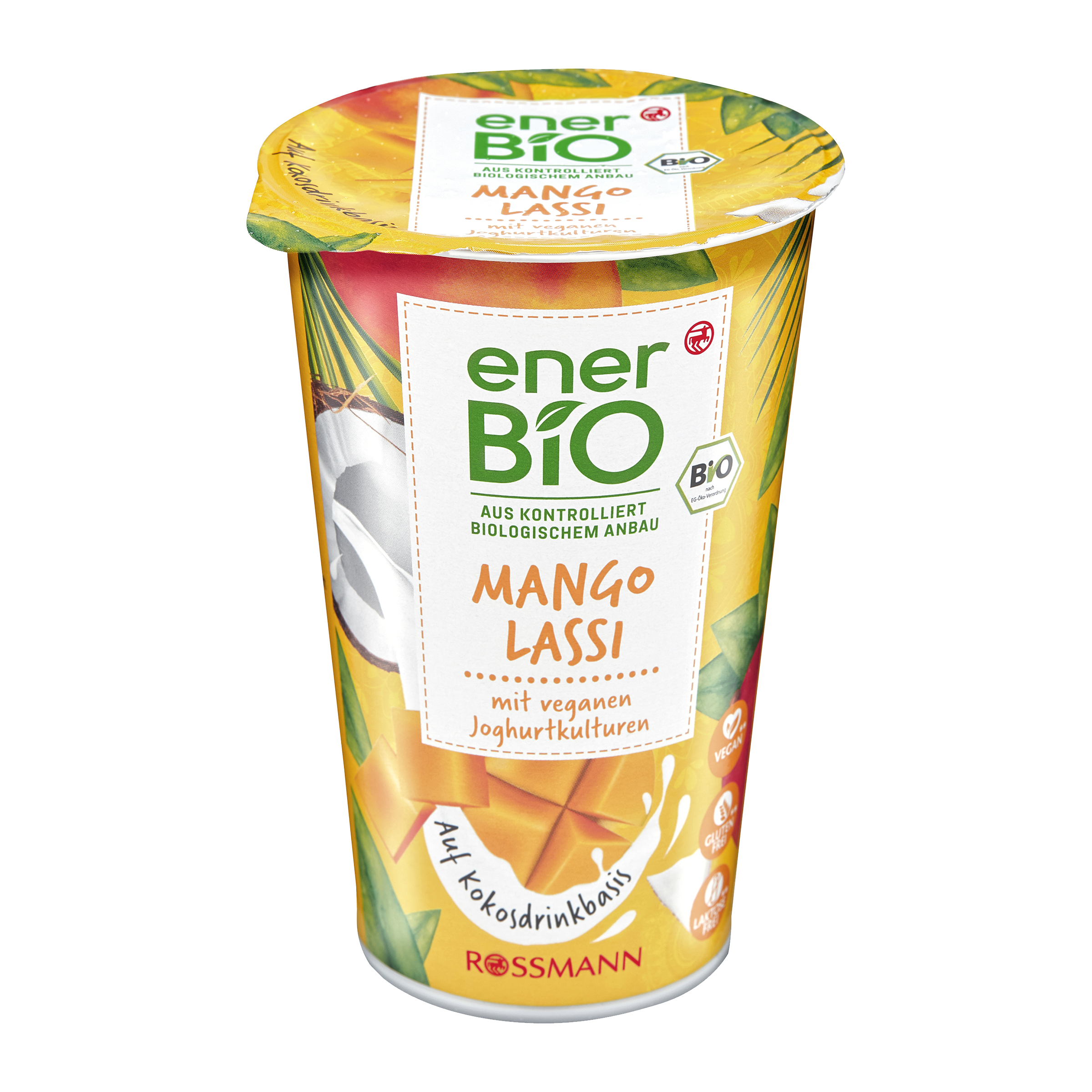 kokosový nápoj 79 % (pitná voda, kokosová dužnina* 7 %), mangové pyré* 11 %, cukr*, škrob*, kokosový tuk*, koncentrovaná šťáva z marakuji*, stabilizátor: pektiny; zahušťovadlo: guma guar*; jedlá mořská sůl, jogurtové kultury.