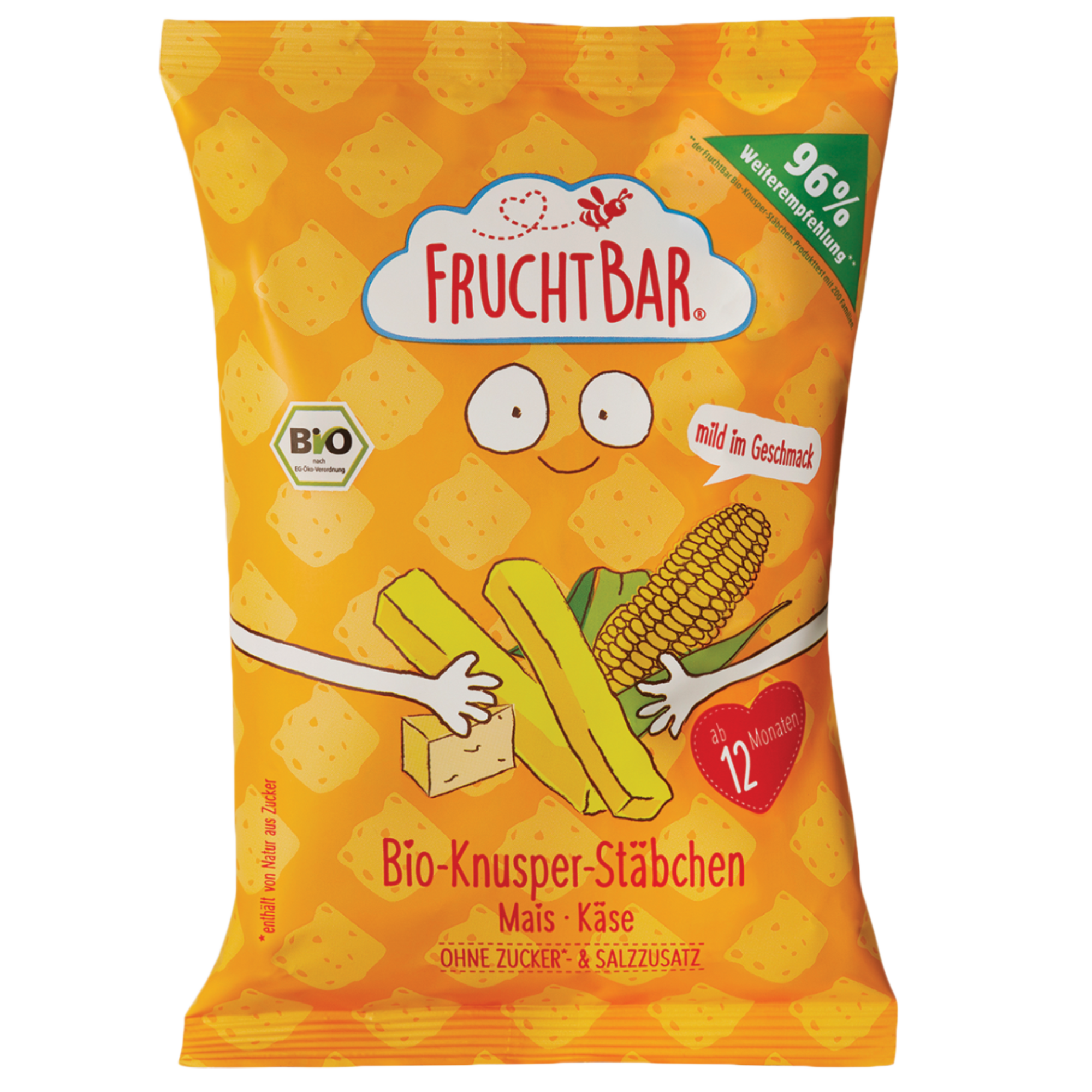 Kukuřičné křupky se sýrem, nesolené a v BIO kvalitě vhodné od ukončeného 12. měsíce. Bez přidaného cukru**, bezlepkové. Výrobek z certifikovaného ekologického zemědělství.