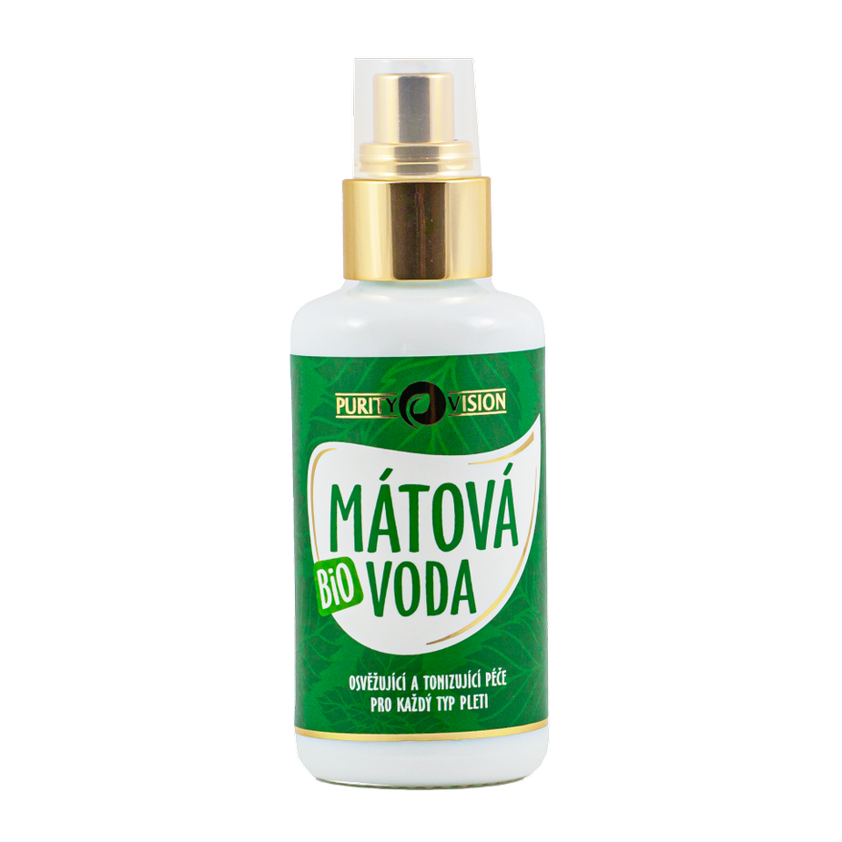 Dopřejte si osvěžující blahodárnou péči. Bio mátová voda je vyrobená šetrnou parní destilací čerstvých lístků máty peprné. Je vhodná pro všechny typy pleti. Stahuje póry a je tak ideální pro mastnou a problematickou pleť. Zamilujete si ji v každodenní kosmetické rutině – k dočišťování, tonizaci či osvěžení, ale k péči i o pokožku celého těla například po opalování či jako zklidňující vodu po holení. Pro harmonizaci pokožky hlavy a snadné rozčesávání vlasů aplikujte Bio mátovou vodu do vlasů. Při horkých letních dnech si mátovou vodu oceníte pro její chladivé účinky. Máta peprná je oblíbená bylinka pro svou nezaměnitelnou vůni a chuť. K jejím benefitům patří také zklidňující účinky. Jelikož podporuje prokrvení a zároveň chladí, oblíbíte si ji v péči o očí okolí. Zmírňuje kruhy pod očima, drobné otoky a únavu.