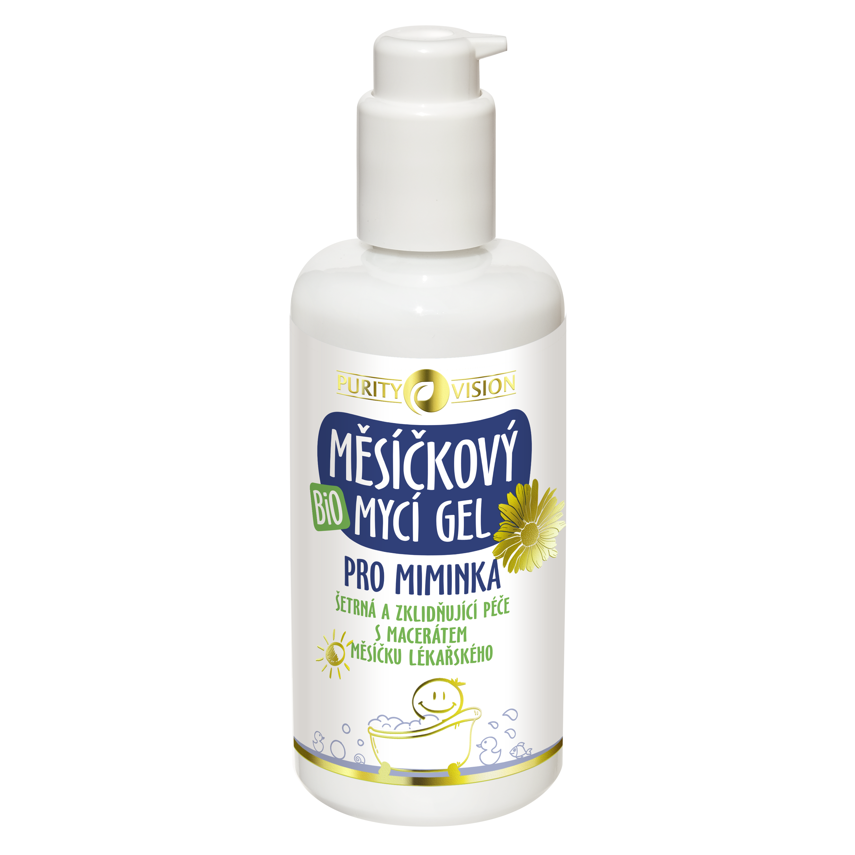 Bio Měsíčkový mycí gel PURITY VISION® šetrně myje a pečuje o pokožku těch nejmenších. Přírodní složení s Bio Pupalkovým a Bio Sezamovým olejem intenzivně zklidňuje dětskou pokožku, náchylnou ke vnějším vlivům. Macerát Měsíčku lékařského pokožku miminek vyživuje a chrání. Společně s Vanilkou dodává mycímu gelu příjemnou vůni, díky které se koupel miminka stává příjemným rituálem.